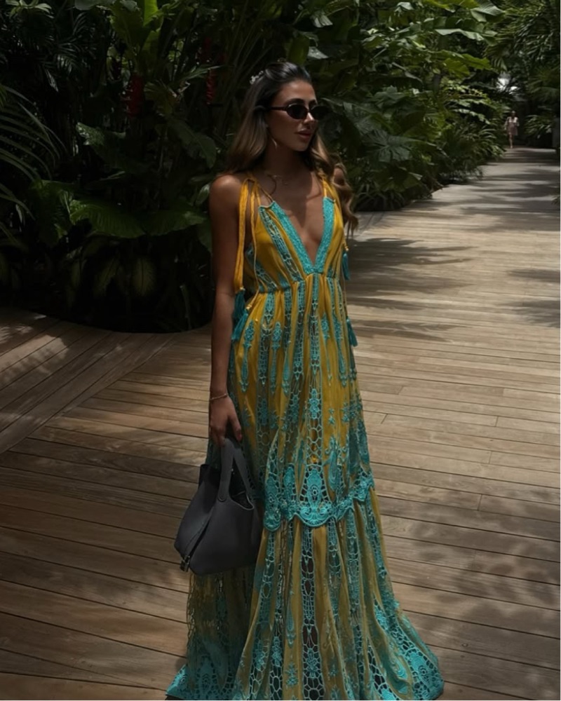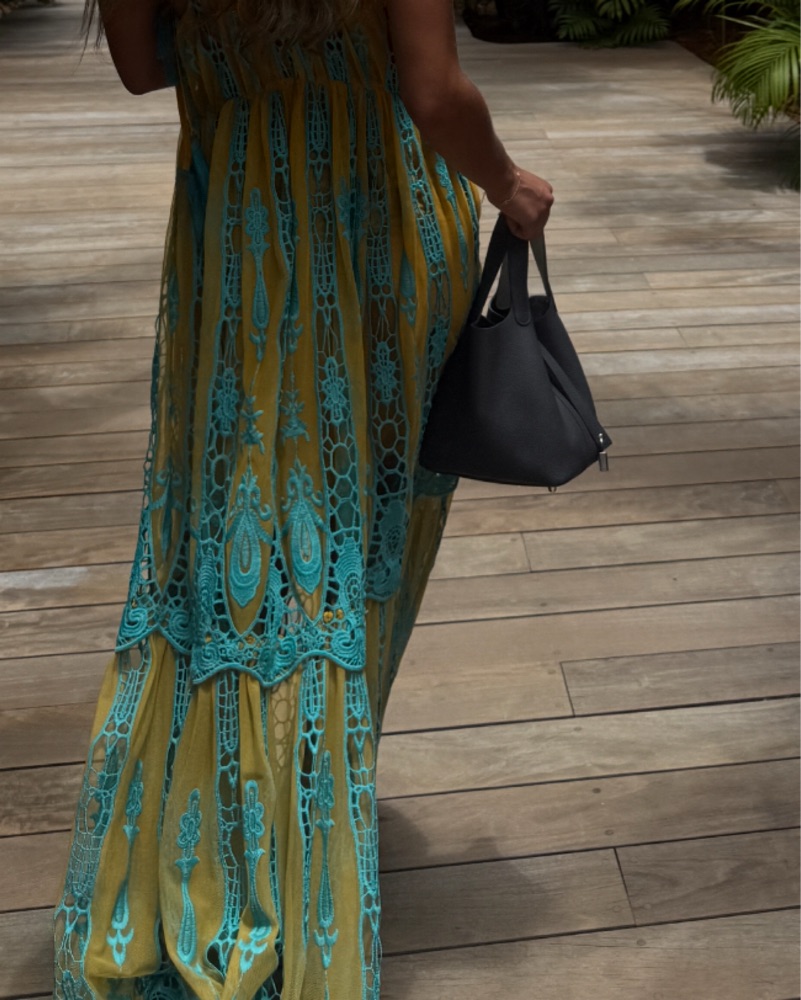 Stunninggg summer maxi dress. Insane details! Double lined mesh. High quality thick fabric. Showstopper! Tassels on straps! Worn once! Antica Sartoria Positano. 🩵