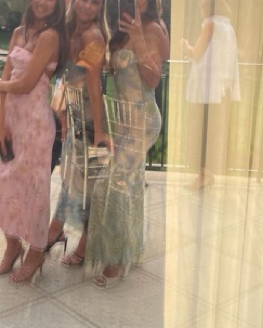 Pale yellow dress w blue and green floral. Stretchy. Worn once