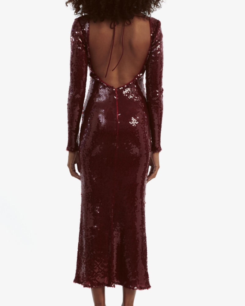 This stunning sequin dress is the perfect outfit for a glamorous event. The open back and fitted silhouette create a head-turning look.