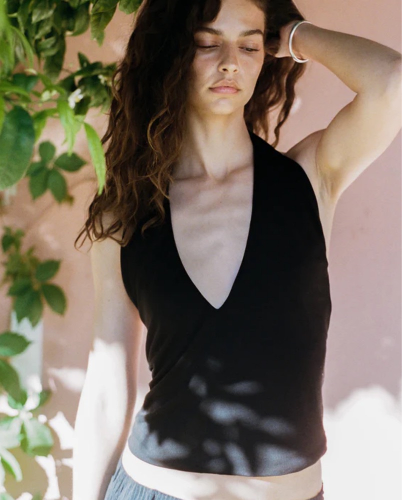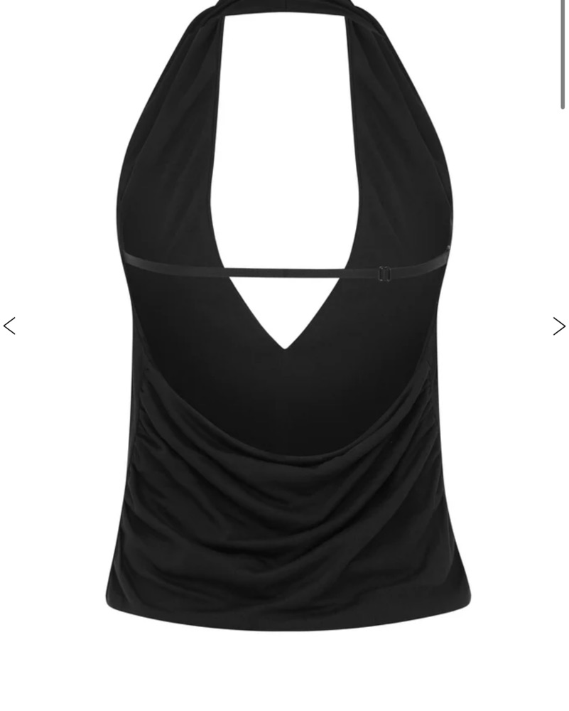 The Nicco Top is a halter neck top, featuring a plunging neckline with a strap & clasp closure at back.