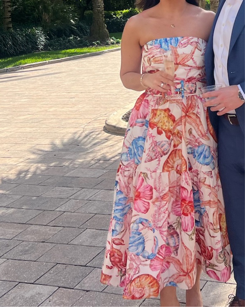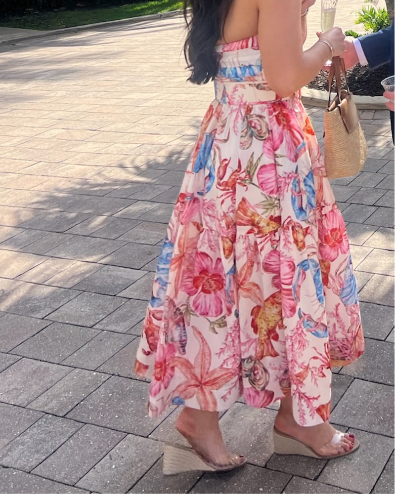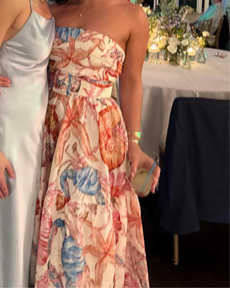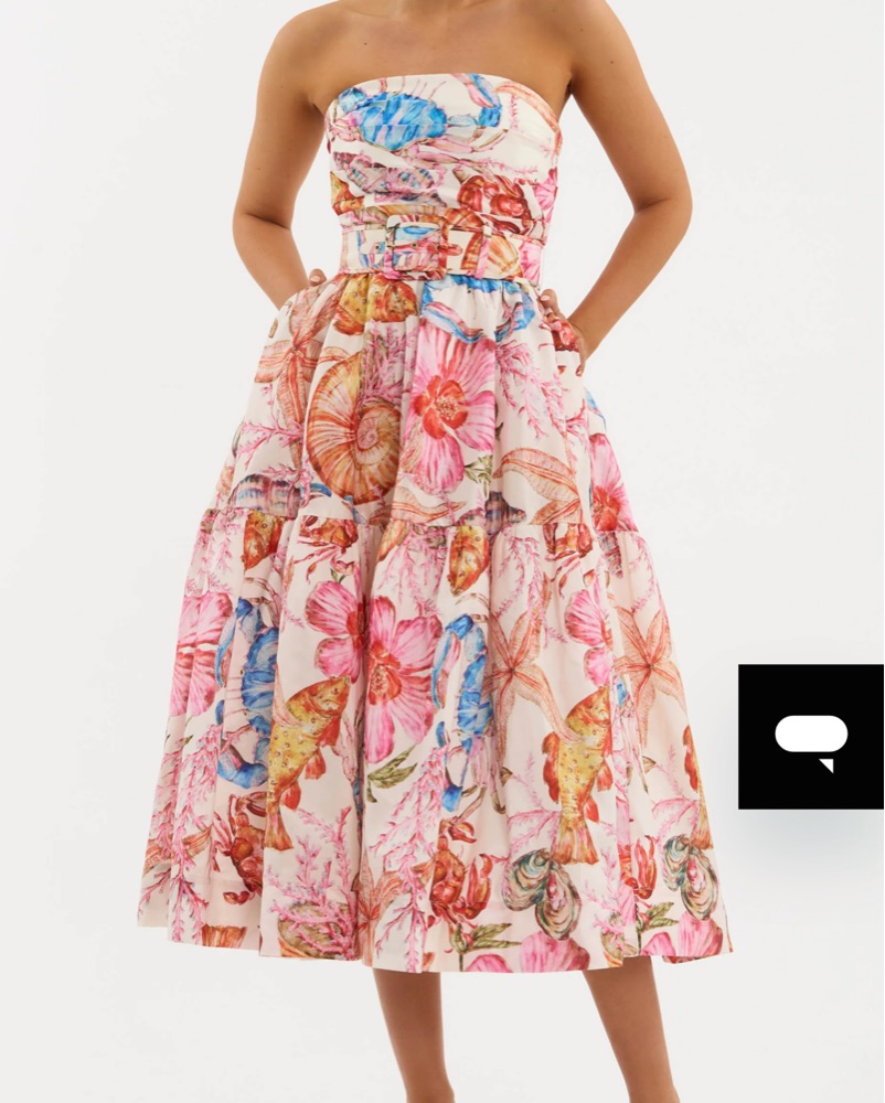 This stunning midi dress is perfect for a summer wedding. Comes with a matching belt. Very flattering and amazing quality.