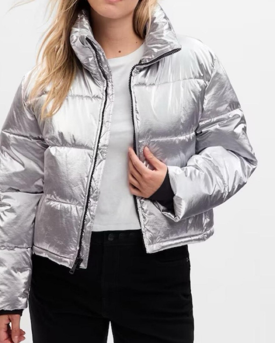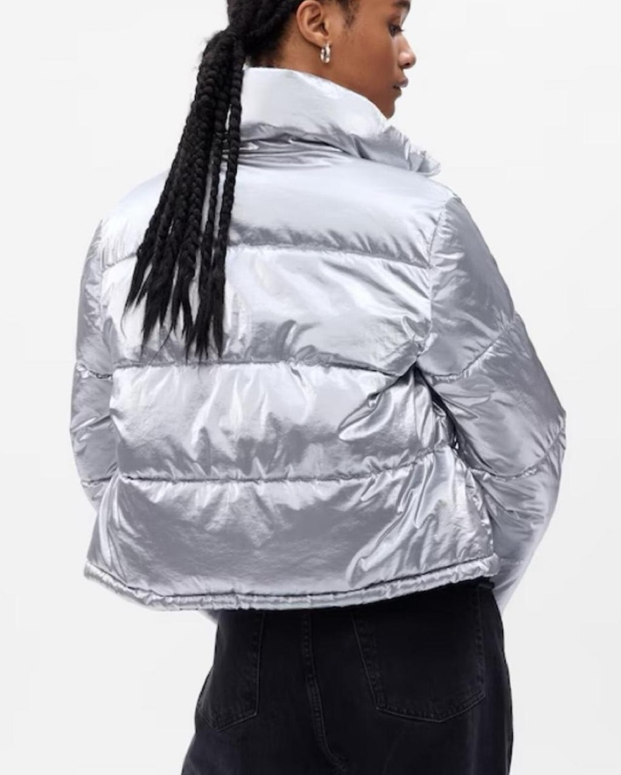 Gap Big Puff Cropped Jacket in Silver