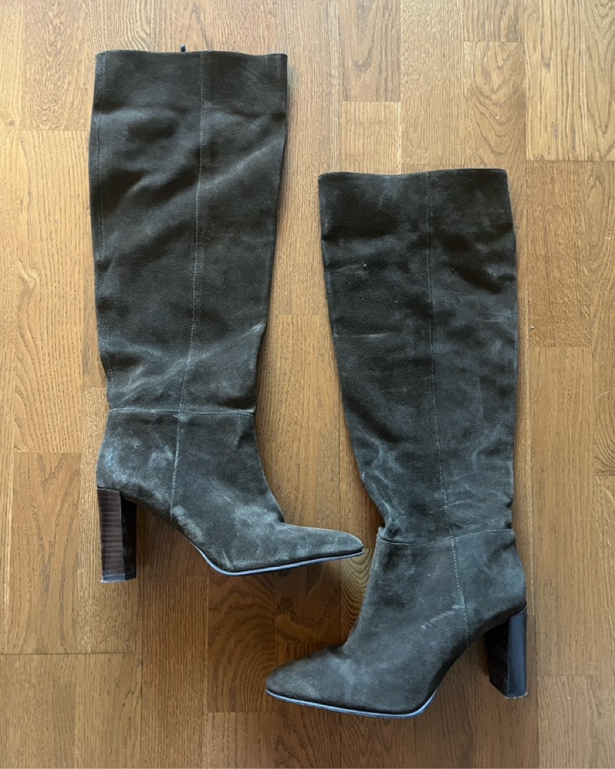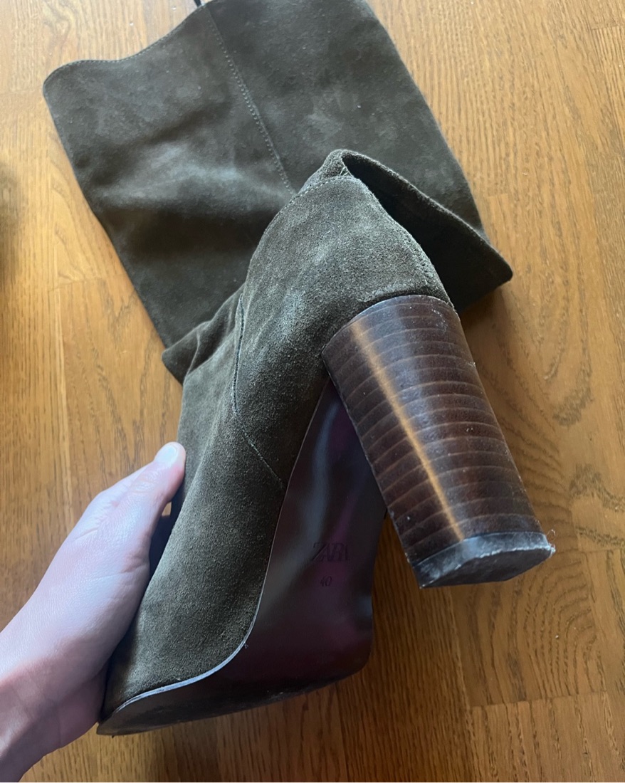 Zara - Olive Knee-High Suede Boots by Zara - Pickle