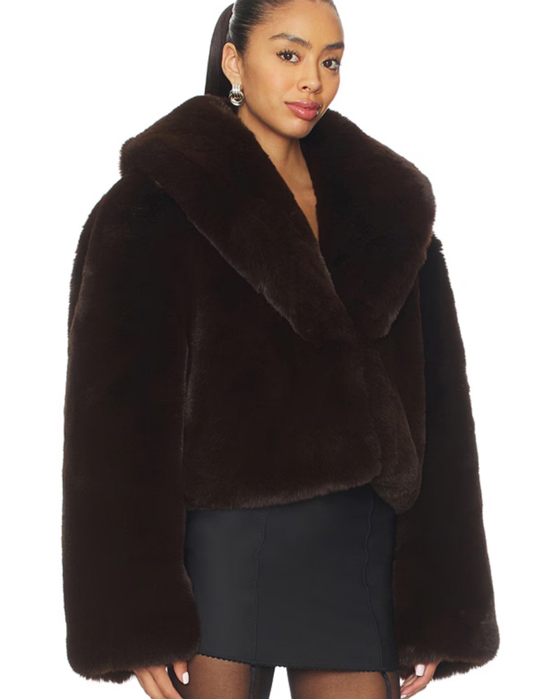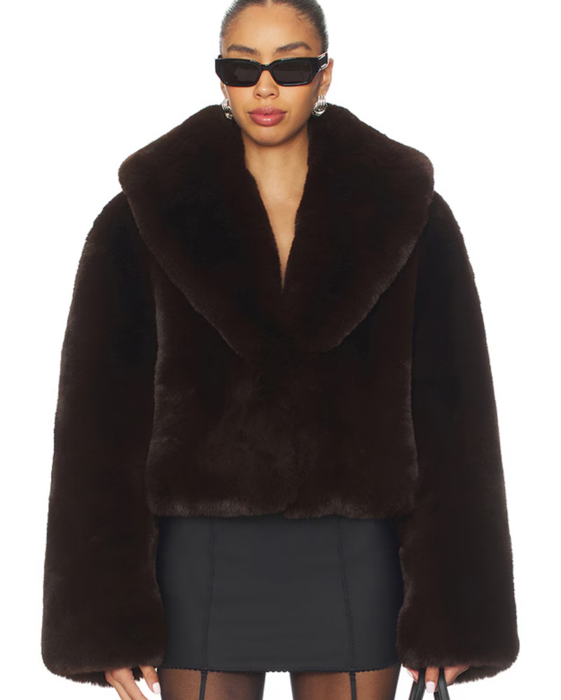 Fluffy Short Fur Jacket In Brown by NBD - Pickle