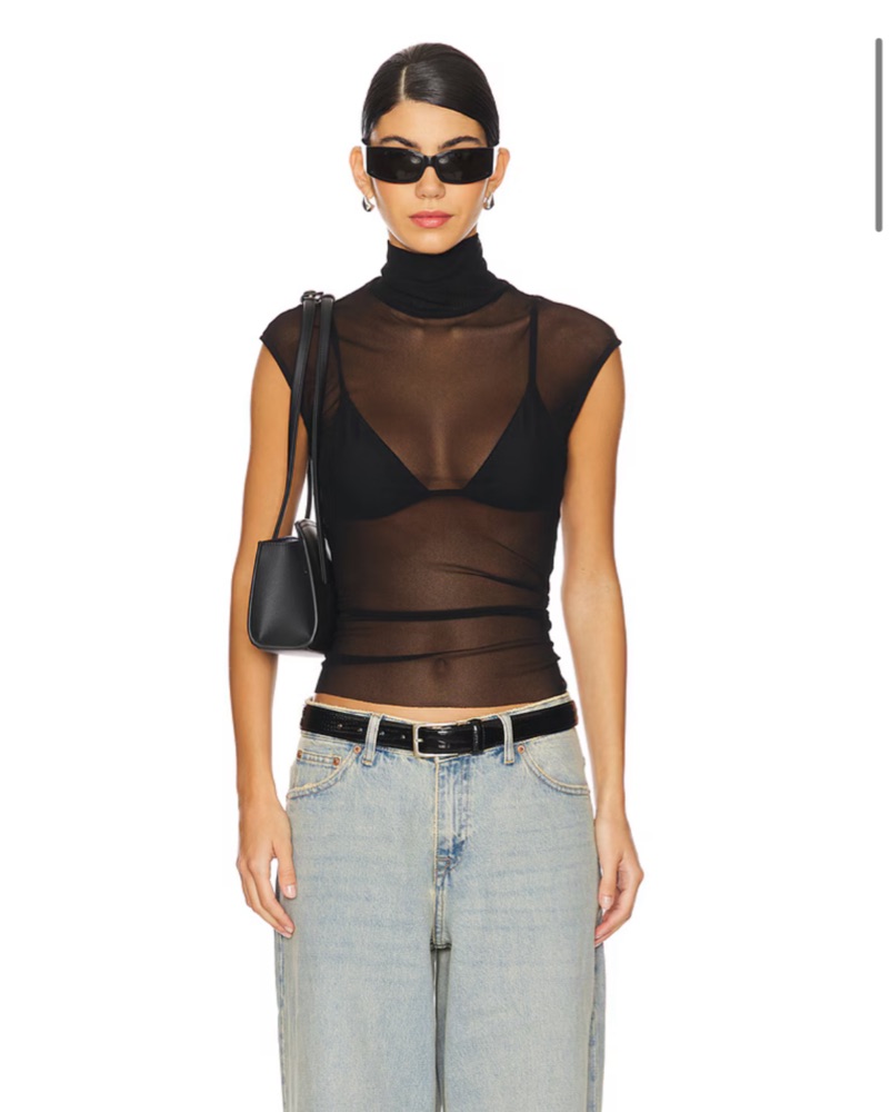 Mesh Turtle Neck Top by Only Hearts - Pickle
