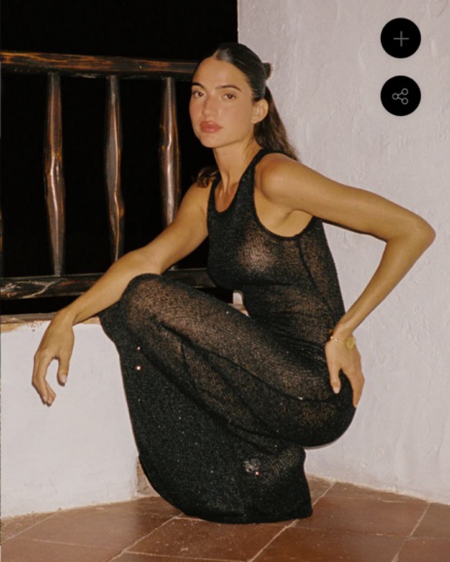 The Natalia Dress in Black Sequin by ASTA RESORT. An opulent floor length dress designed to be the centre of attention and flaunting your figure. Made from a lustrous cotton-based knit woven in with micro sequins from head to toe.