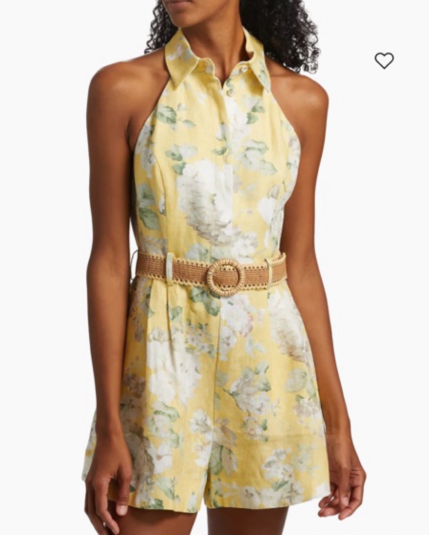 Zimmermann Acacia halter romper in yellow floral. Size 0P (xs)