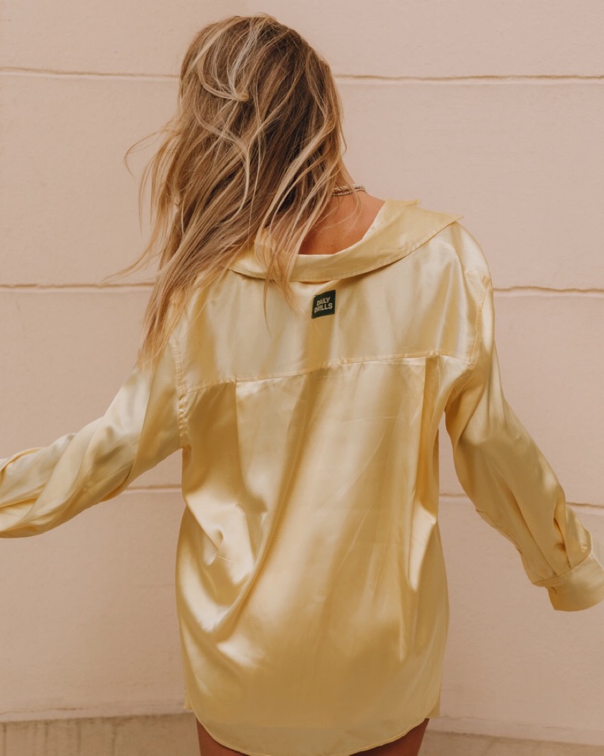 Daily drills yellow silky button down and mini skirt
