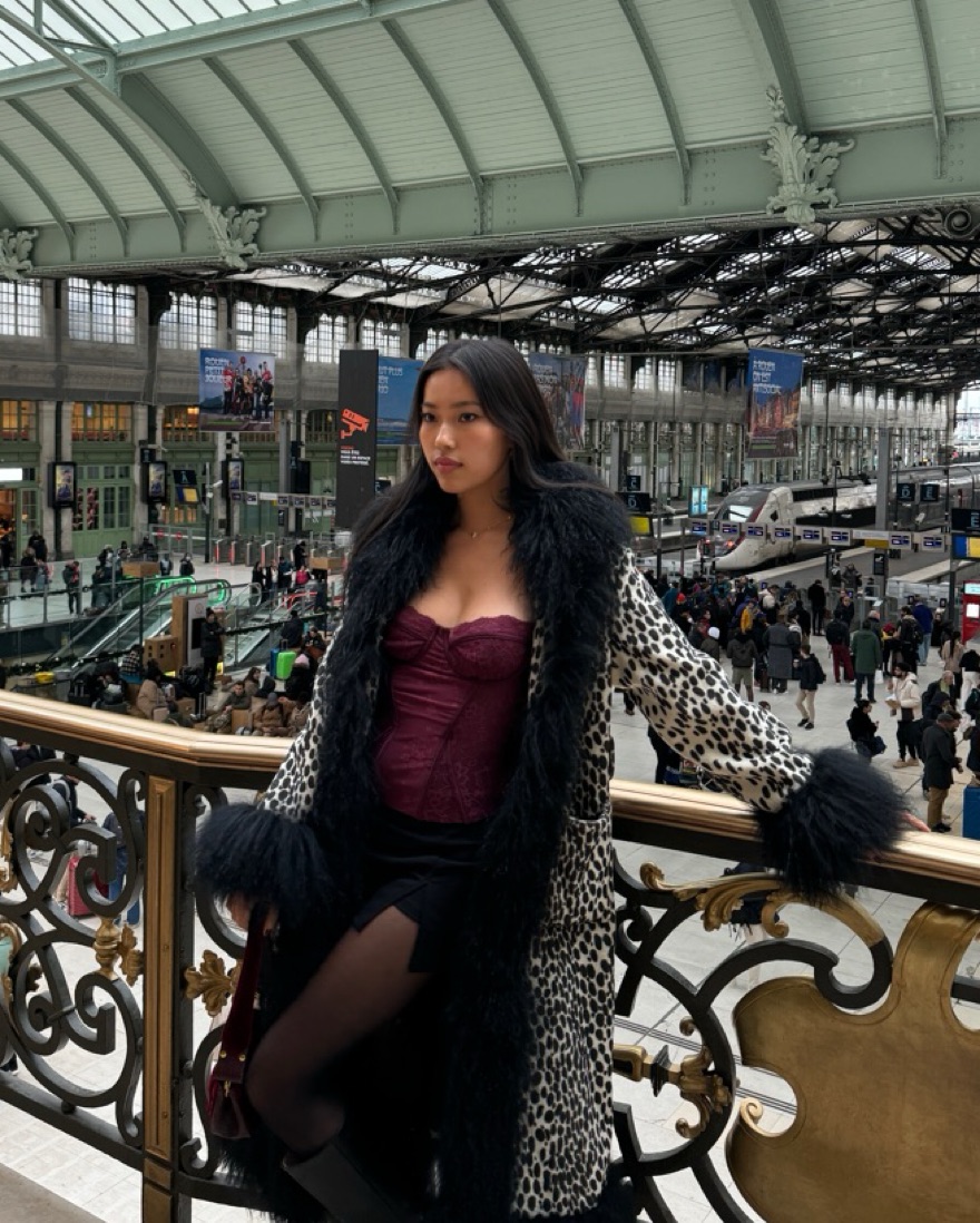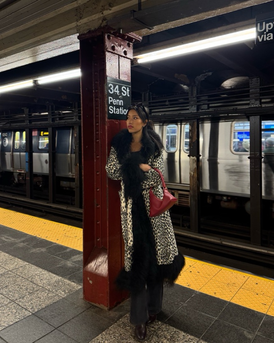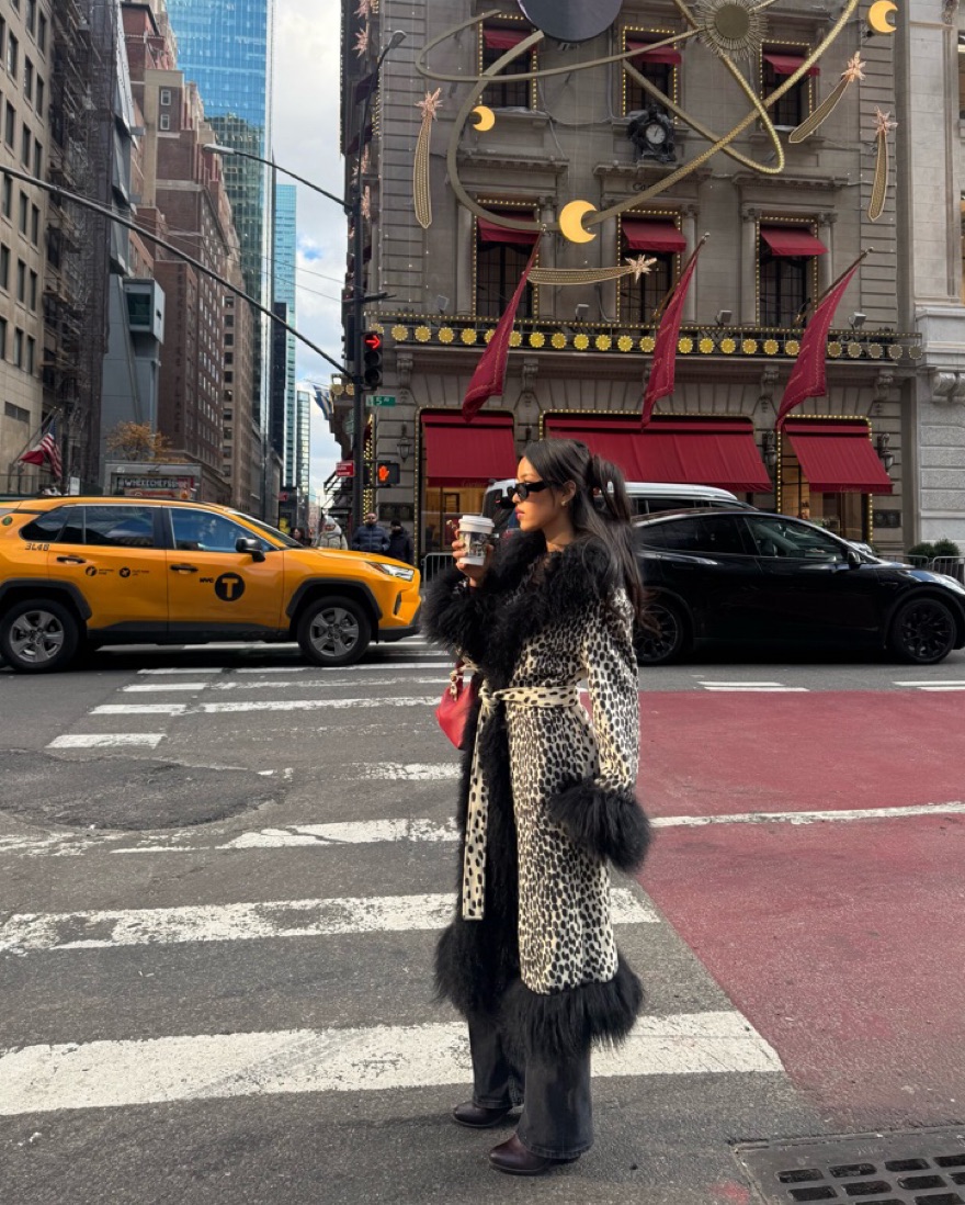 Cutest leopard coat with a Mongolian fur trim