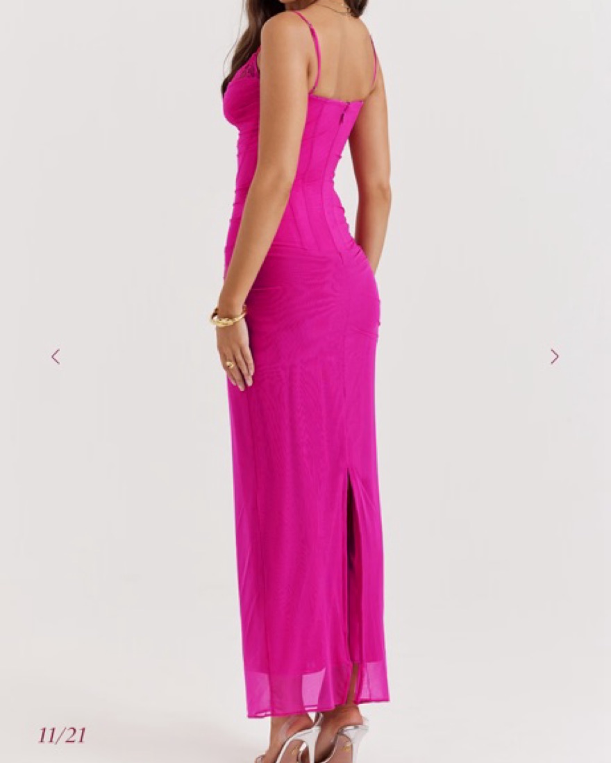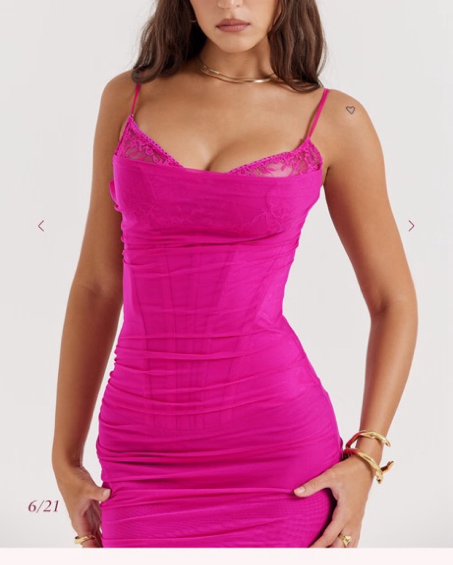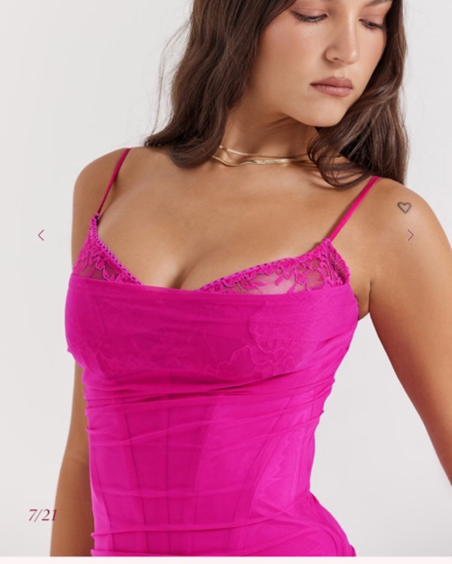 'Nalini' sets the tone for summer glamour in a gorgeous fuchsia hue for an ultra feminine fit. Beautifully cut from out luxurious signature stretch mesh that sculpts and shapes, 'Nalini' is so pretty. A lace trim that peaks from the neckline and has supportive underwired cups with corseted bodice