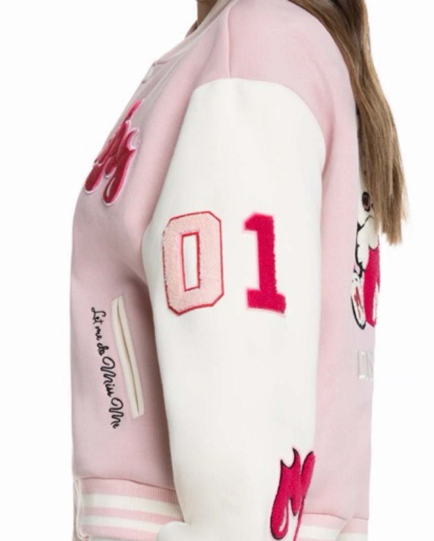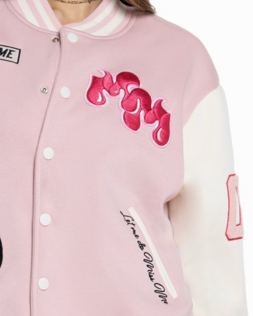 Miss Me Love Crew Varsity Jacket in pink size Medium, never worn