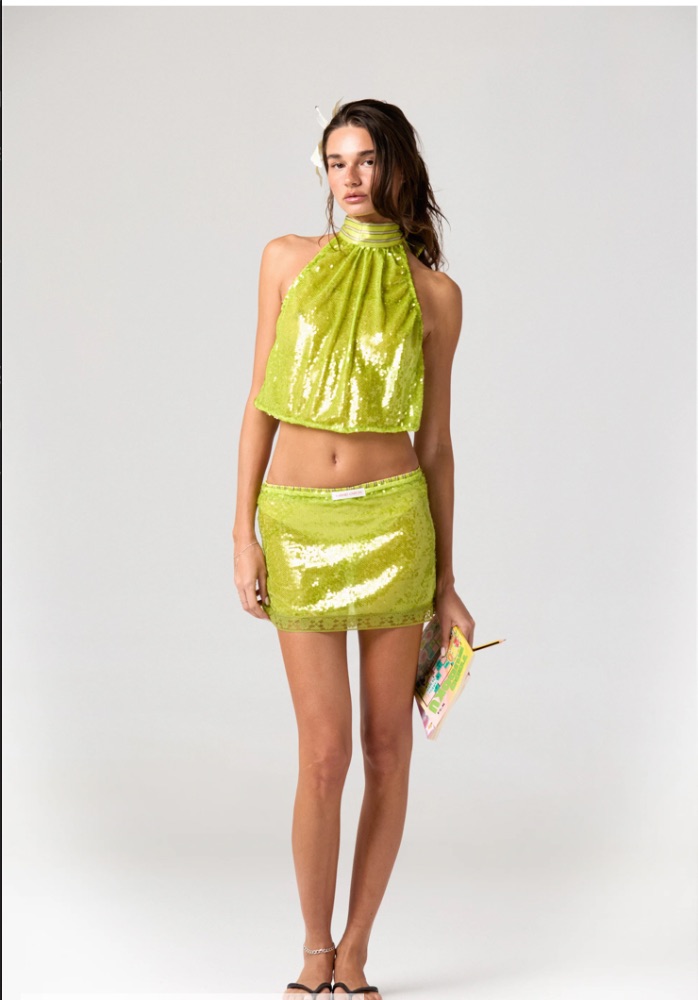 Hand Over Cristobal's Halter Top & Skirt Sequin Set by HANDOVER - Pickle