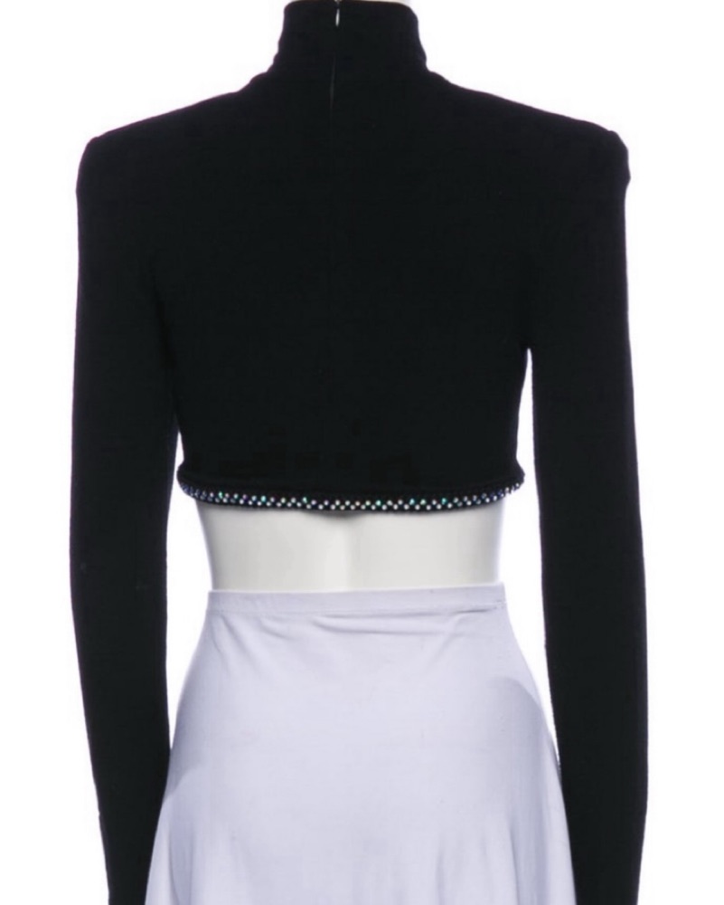 Tight fitted long sleeve top from winter '24 collection. Rhinestone trim along bottom and double C on front. Back zip. Size FR34