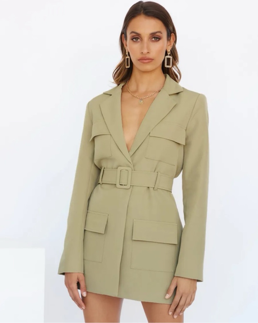 Sage Green Lioness Blazer Dress by Lioness - Pickle