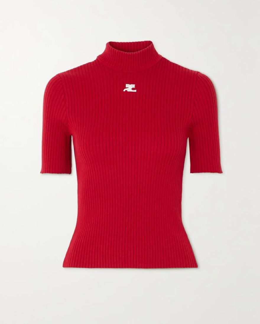 Courrèges' ribbed-knit top is part of its 'Reedition' collection, which is inspired by some of the brand's most iconic styles from the '60s and '70s. It's designed for a slim fit and appliquéd with the label's futuristic logo at the chest. Tuck yours into high-waisted jeans or a mini skirt.