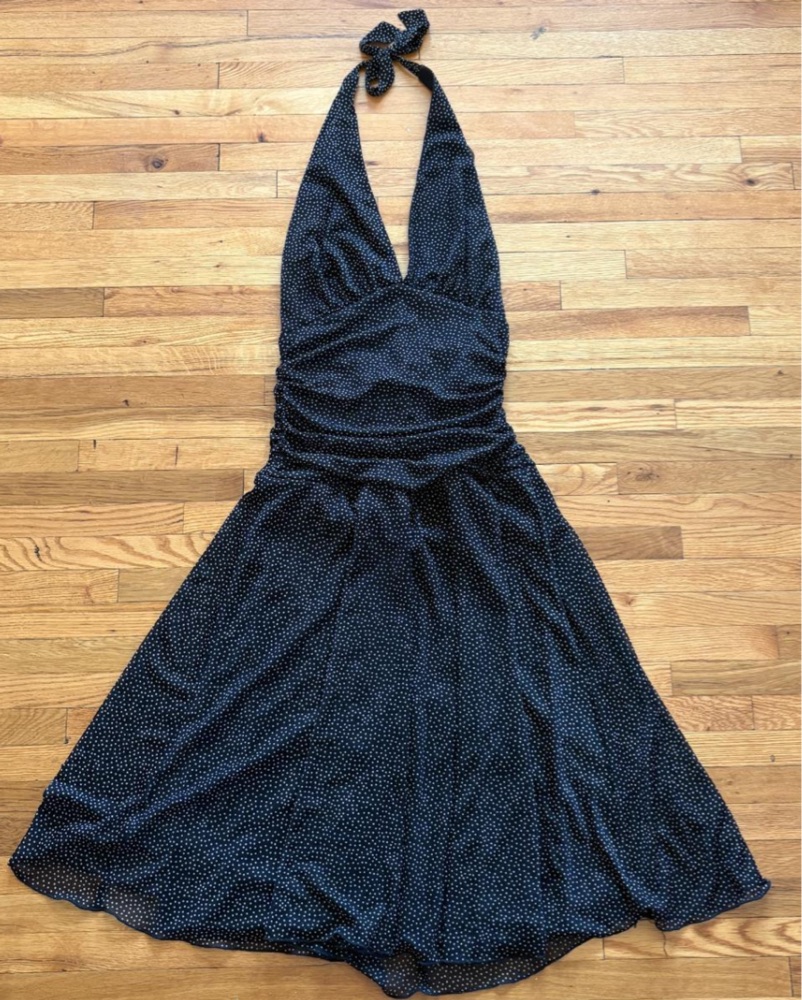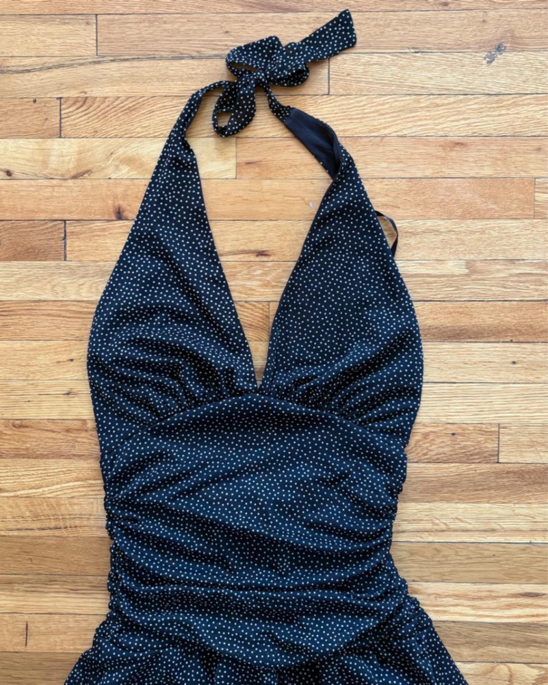 Drop Waist Halter Polka Dot Midi Dress by Vintage - Pickle