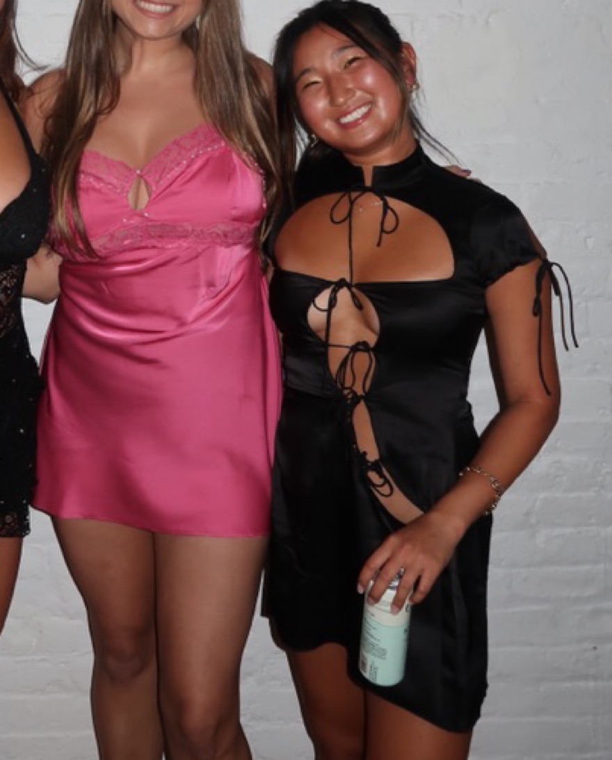 Super flagtering black silk mini dress with ties! Perfect for a night out, dress is fragile so please be gentle if renting!
