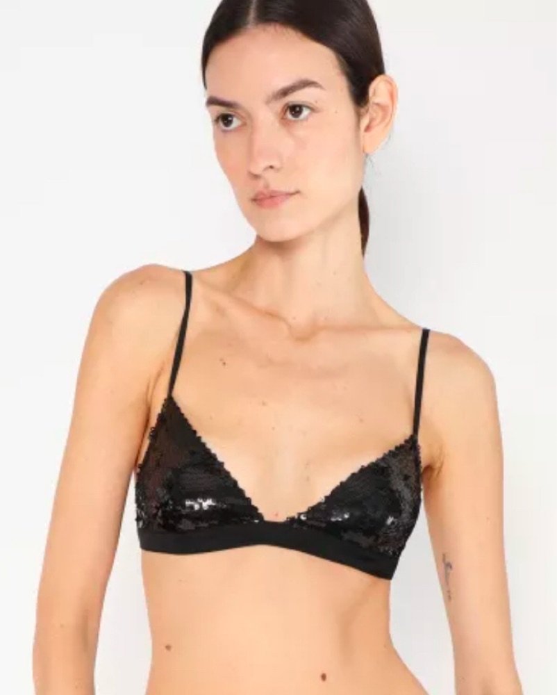KHAITE Crop Top Sequin Bralette Bra by Khaite - Pickle
