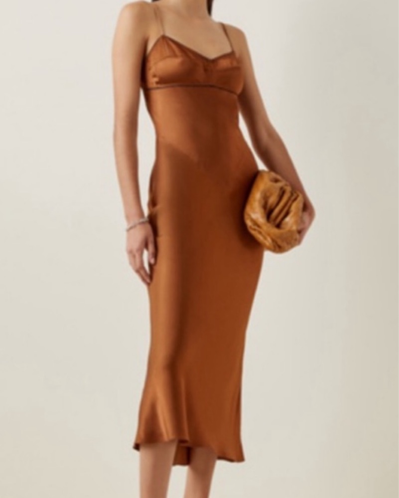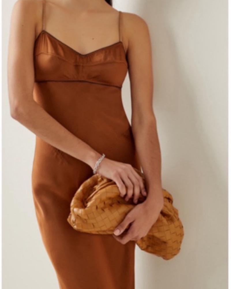 ANNA OCTOBER Waterlily open-back satin midi slip dress. Size XS. I typically take 0 or XS, 32D/34C and bust fits on top. I'm 5'3 and wearing 3" heels in photos.