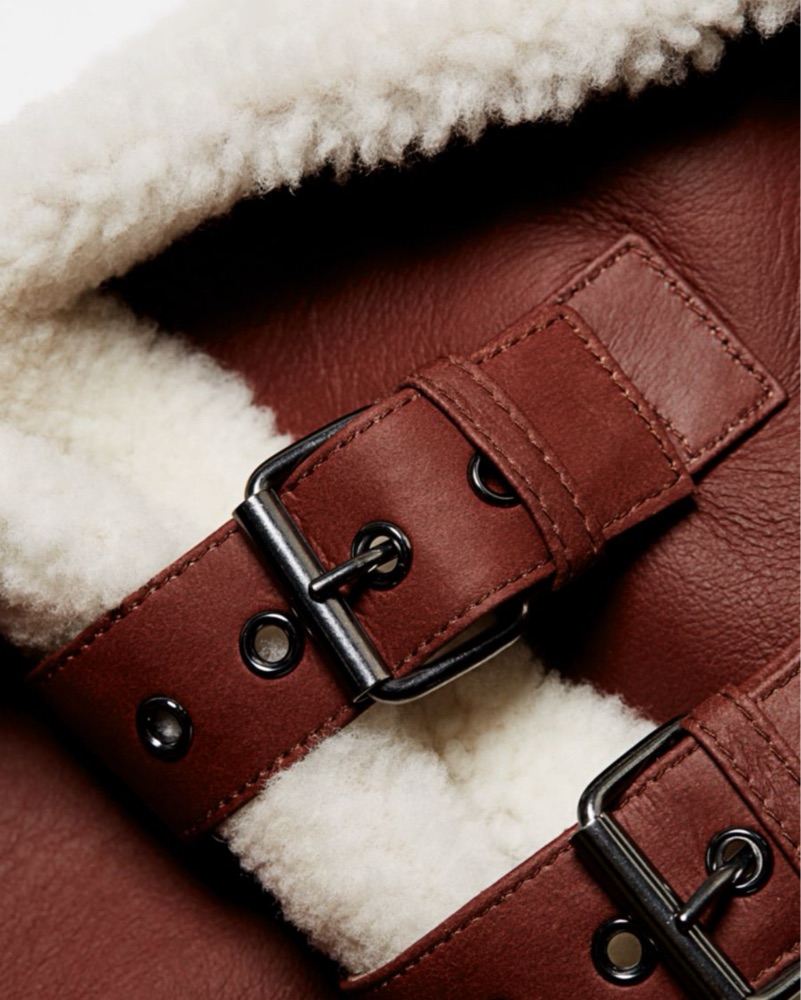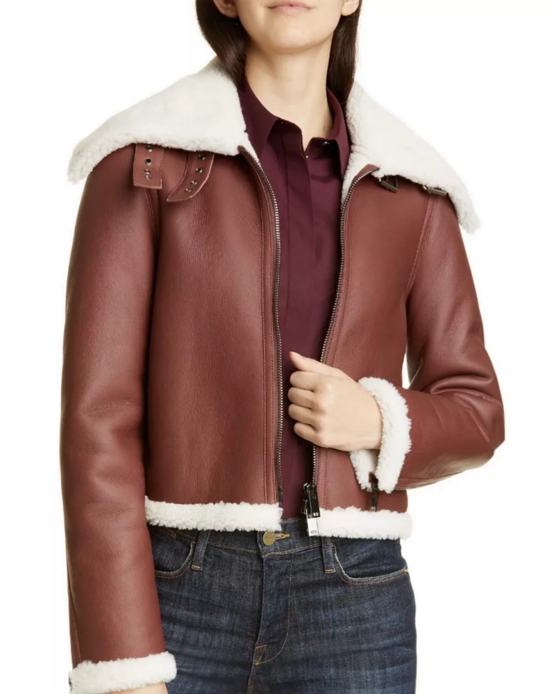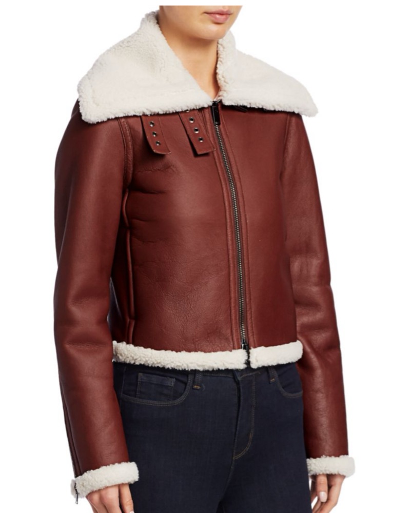 Theory Shearling Moto Jacket in brown - sold out everywhere