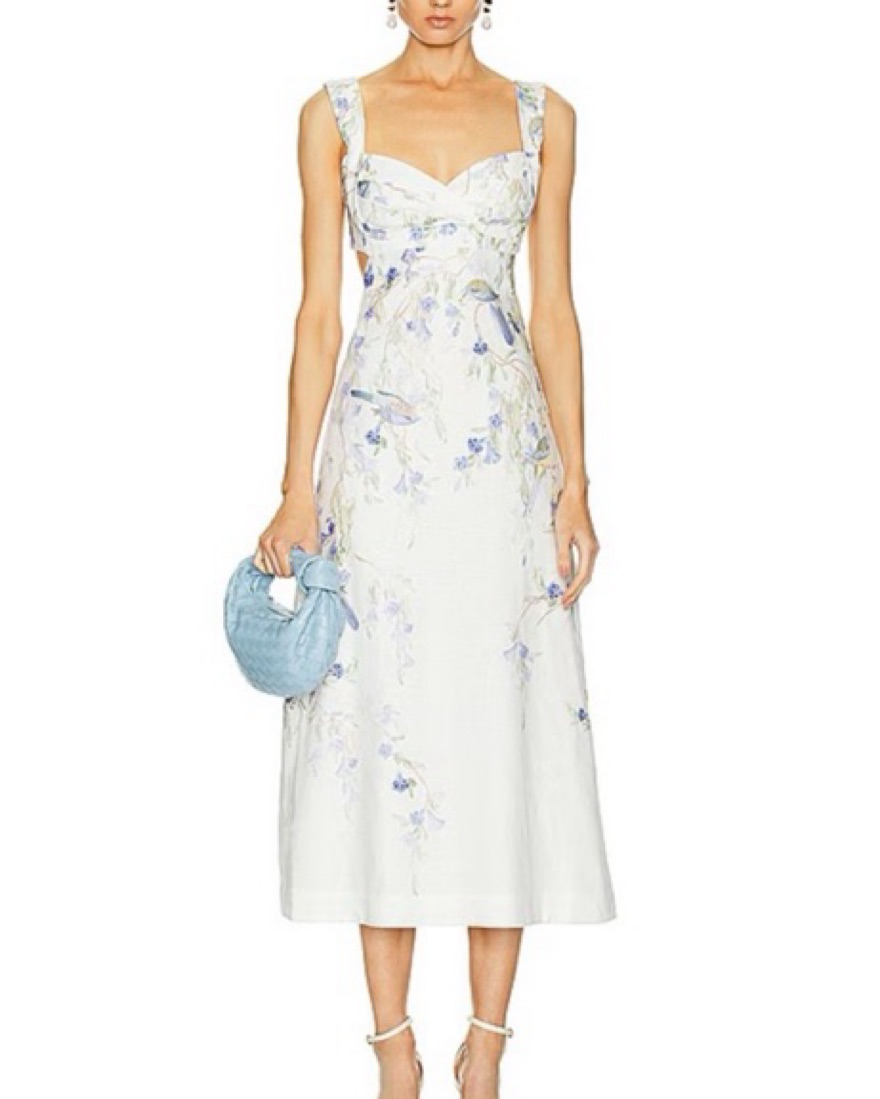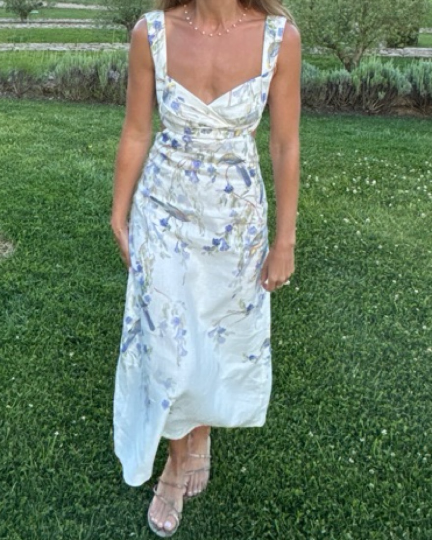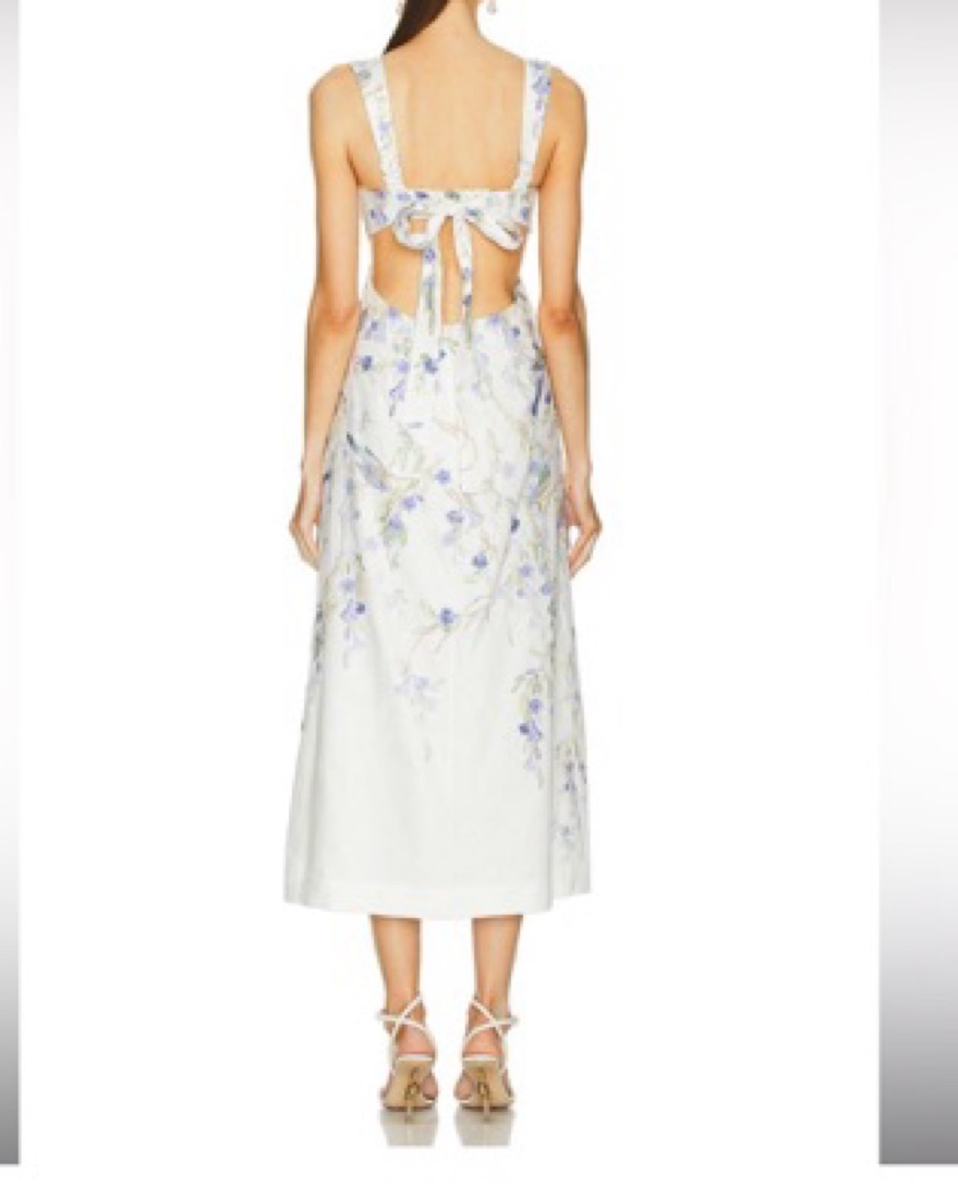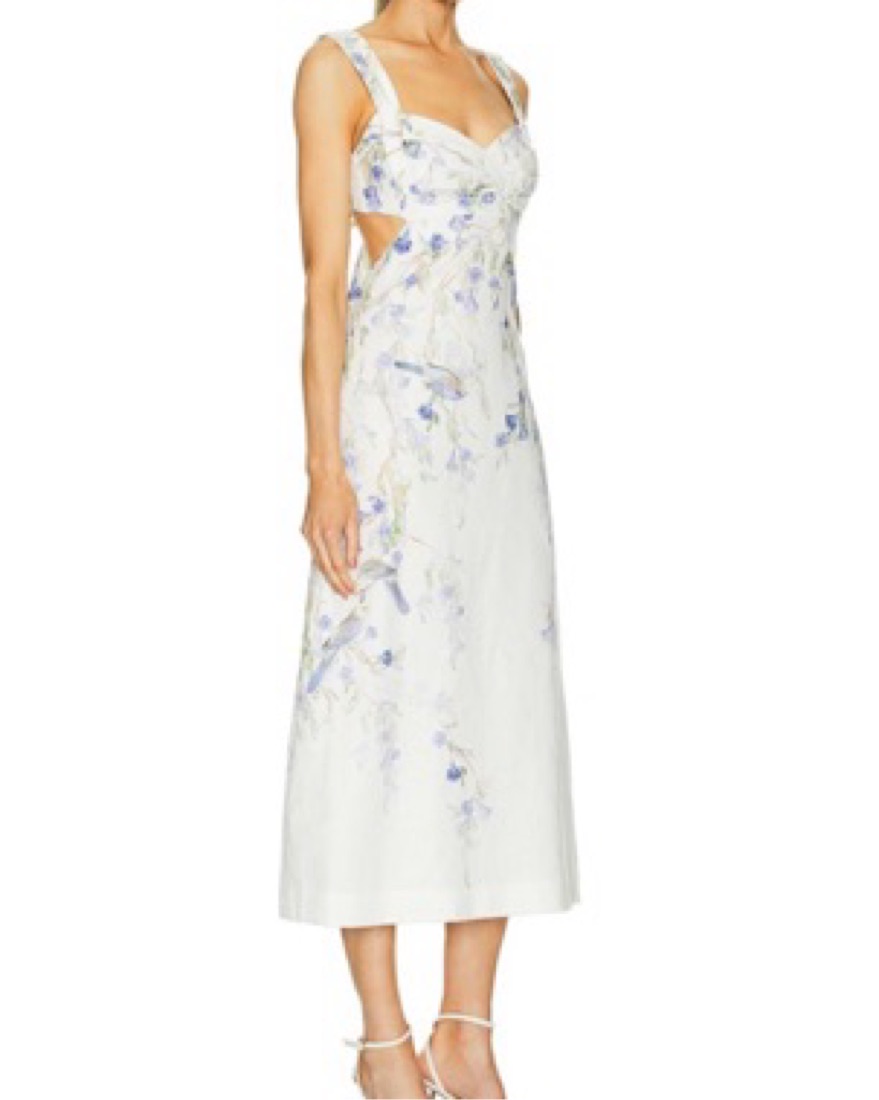Linen midi dress with gorgeous blue bird print. Zimmermann Size 0 (fits like usual size 2)
