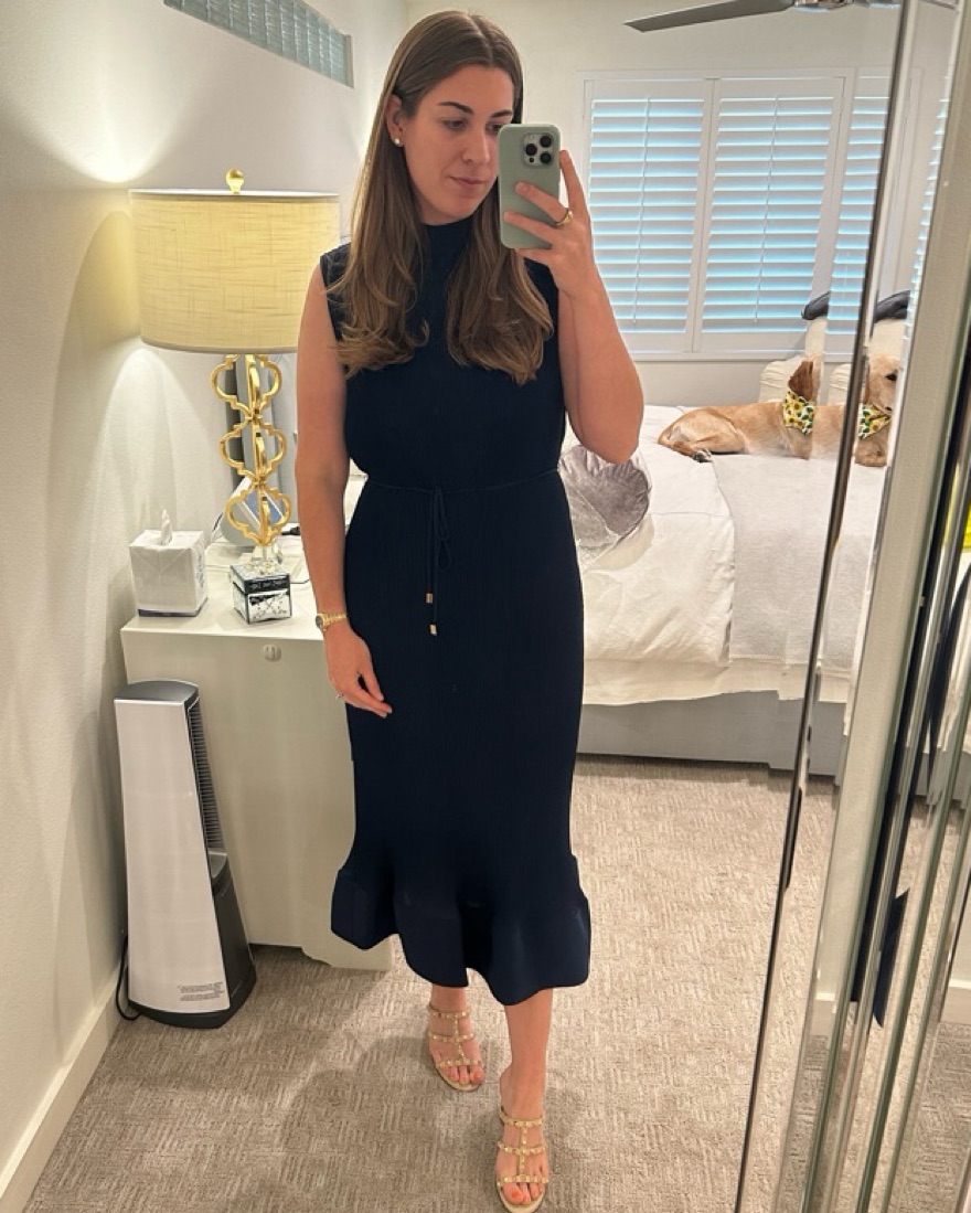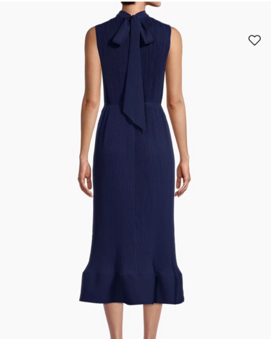 Perfect for weddings, cocktail parties, and work events alike! Navy blue color is flattering on all. Tie detail in the back adds an element of interest.