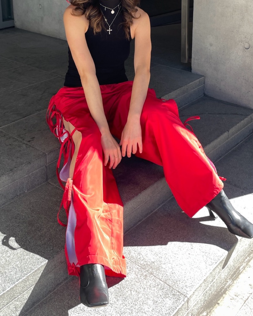 Stunnning sandy liang trackpants with Slits at sides with ties and drawstring waist