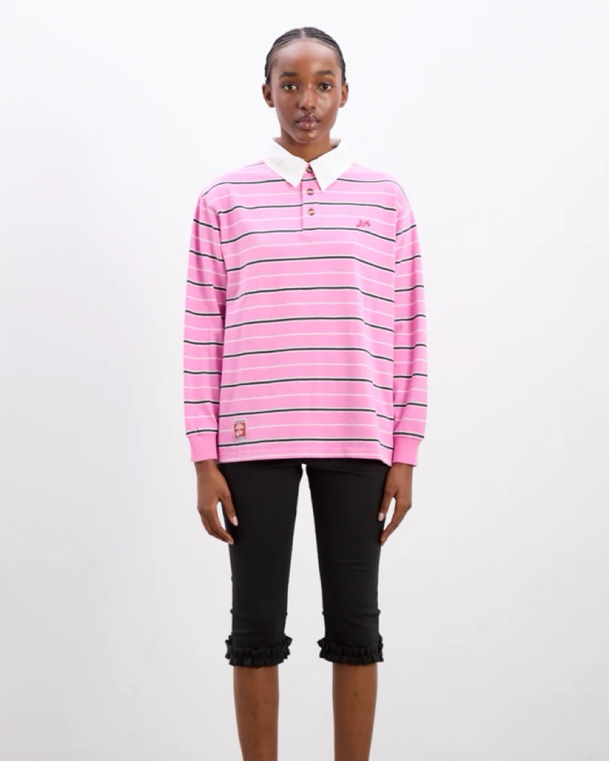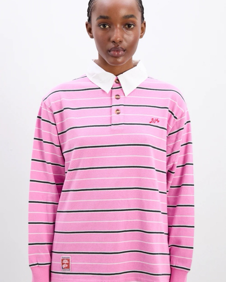 Damson Madder pink striped rugby shirt long sleeve with collar