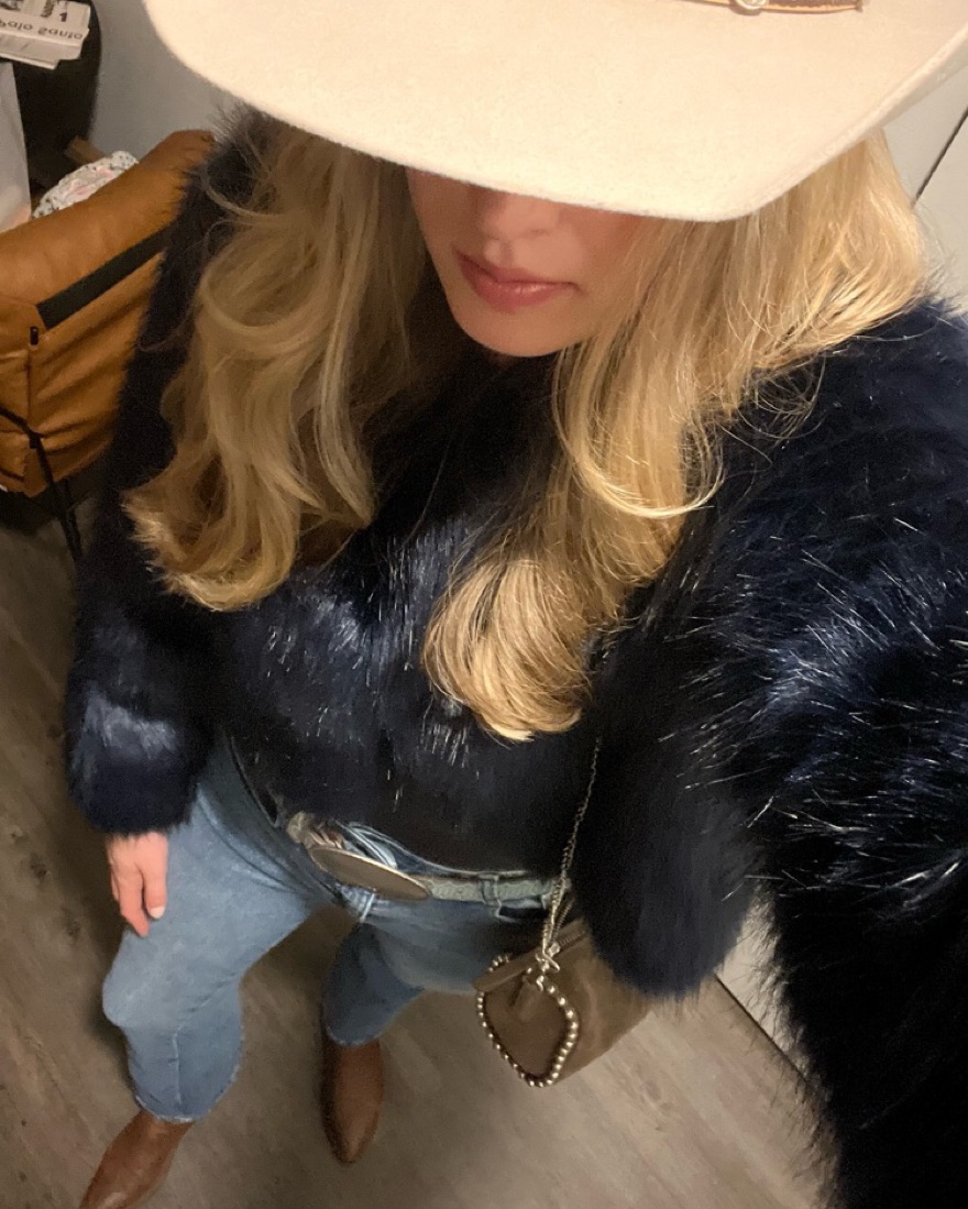 Dark blue faux fur jacket