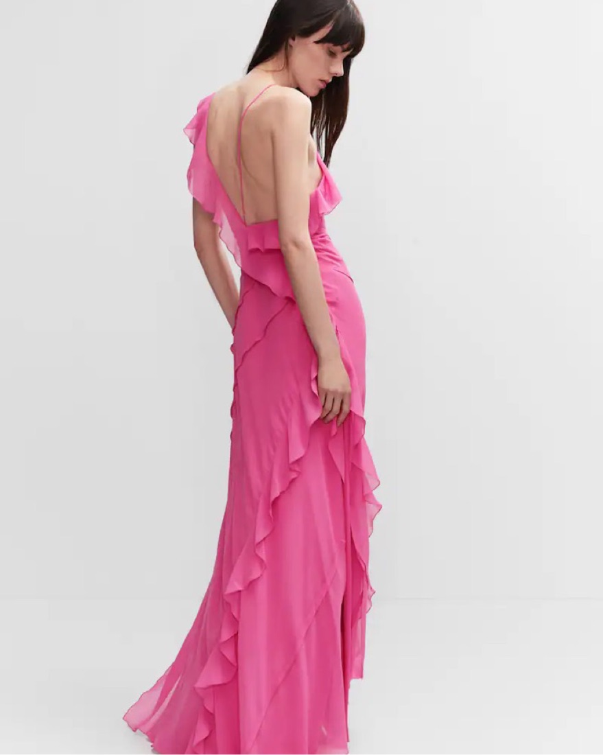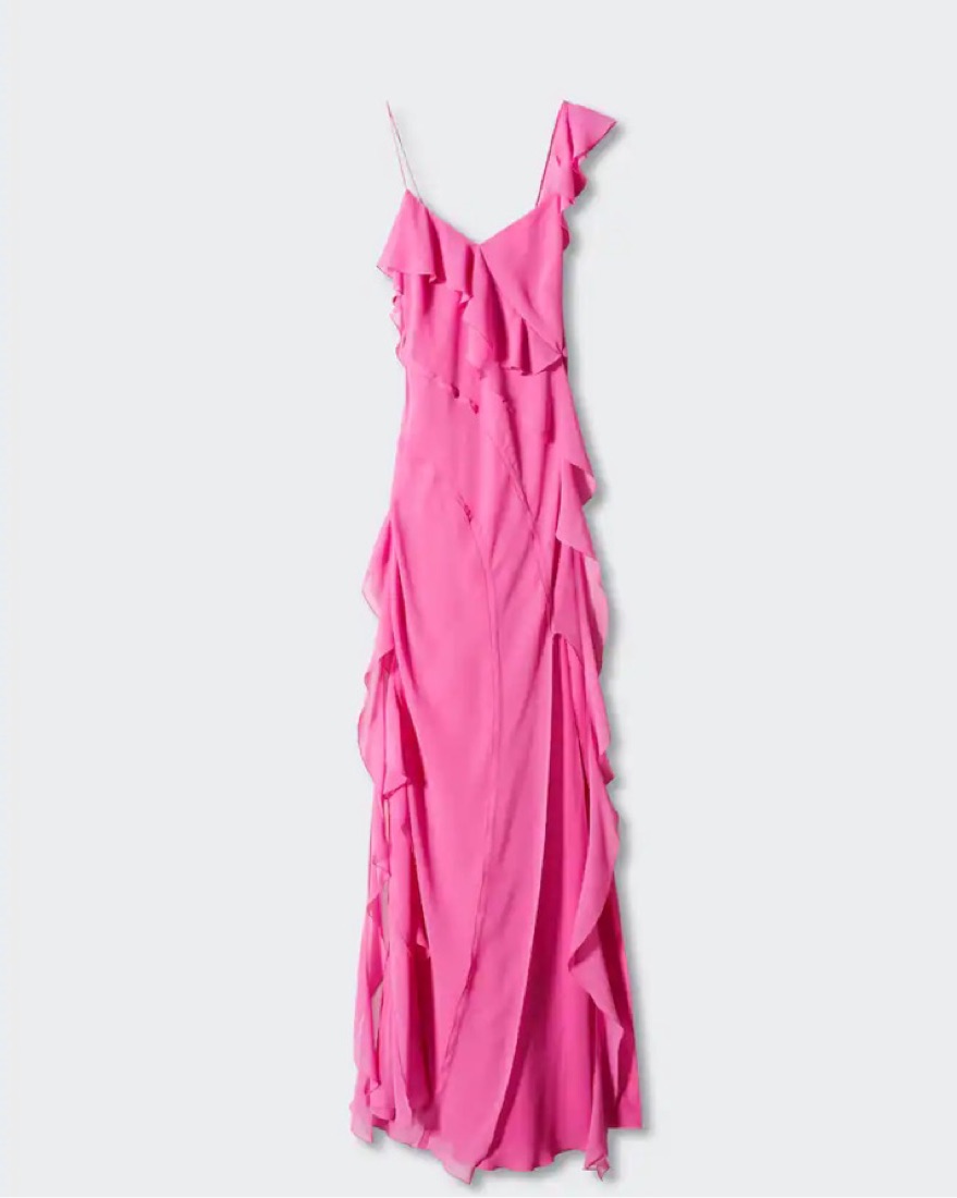 Pink Ruffles Slit Dress from Mango