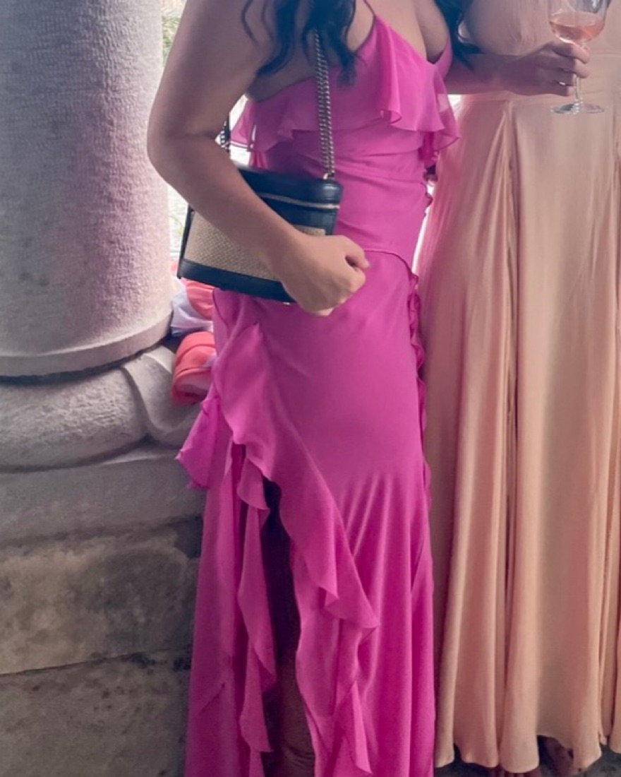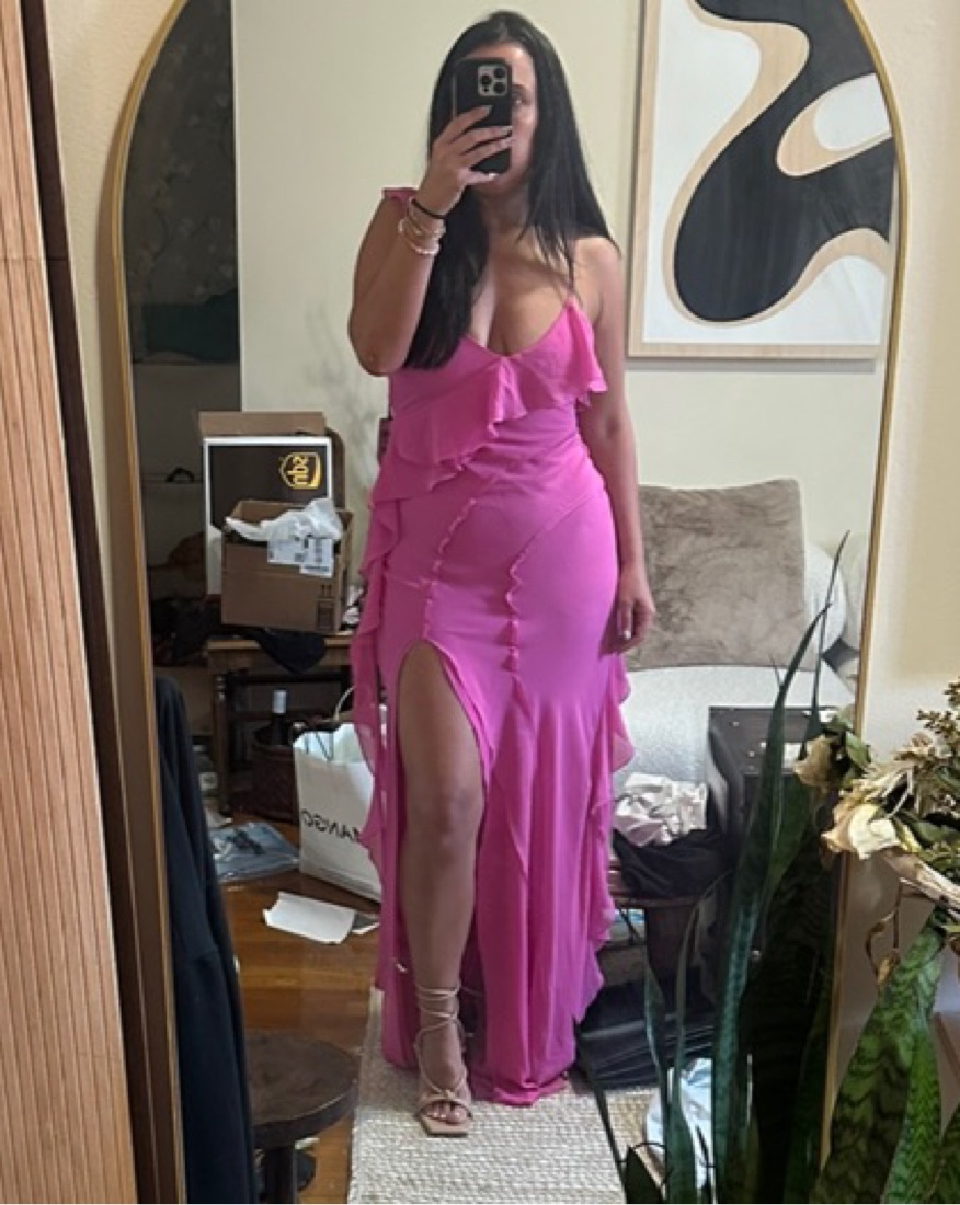 Floor length pink ruffle dress. Size 4/small. This will fit you if yoire a true 4 and between sizes 4/6 s/m.