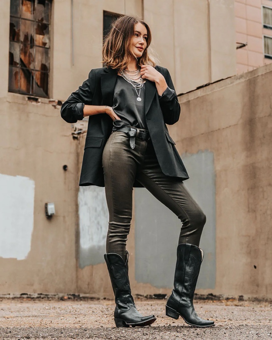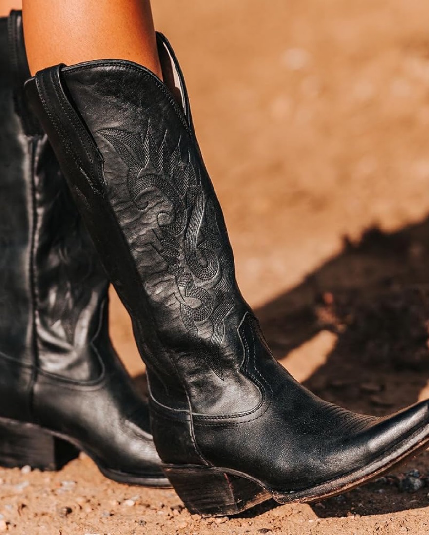 The chicest cowgirl boots ever! With a red dyed sole. These stylish cowgirl boots are perfect for adding a touch of Western flair to any outfit. Pair them with your favorite denim or dress for a fashionable and versatile look. Perfect for a night out at common country 😉