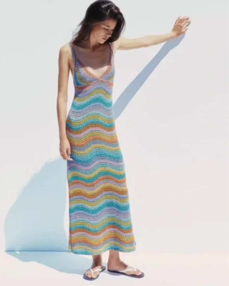 Sold out! Beautiful beachy crochet multicolor maxi dress
