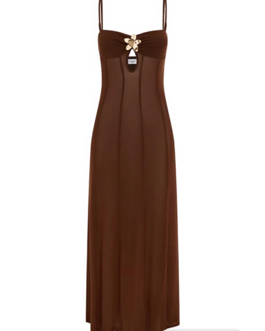 This stunning mahogany dress is perfect for a formal occasion. The figure-flattering silhouette and luxurious fabric create an effortlessly chic look.