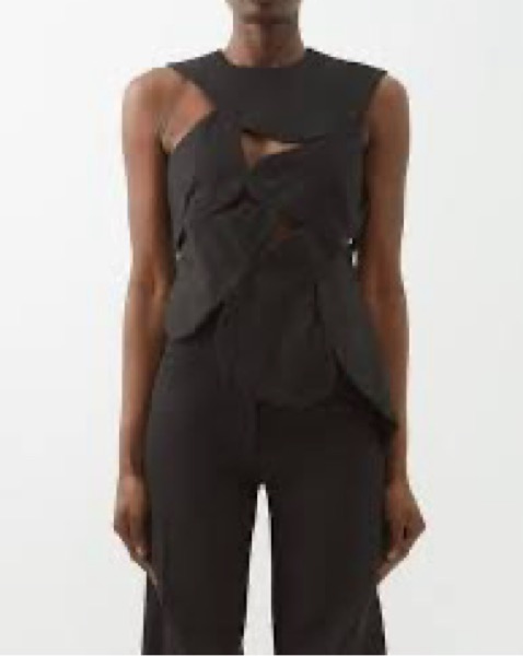 AWAKE MODE Archipelago panelled cotton-poplin top in black. I wear it most often with jeans or the black skirt in my closet by the same designer.
