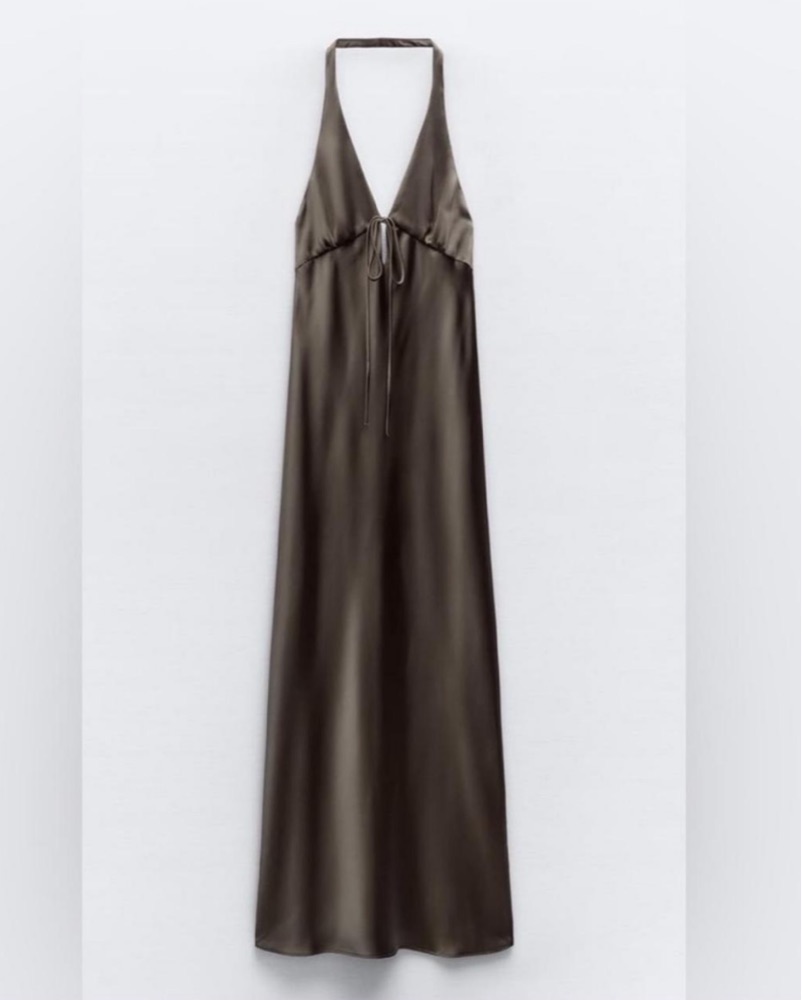 Satin Halter Tie Formal Dress by ZARA - Pickle