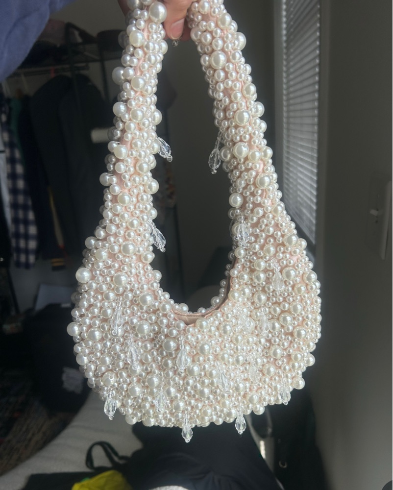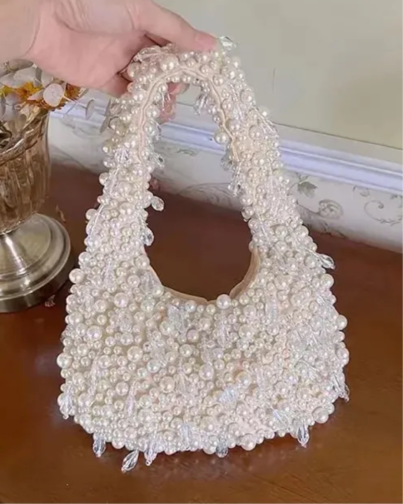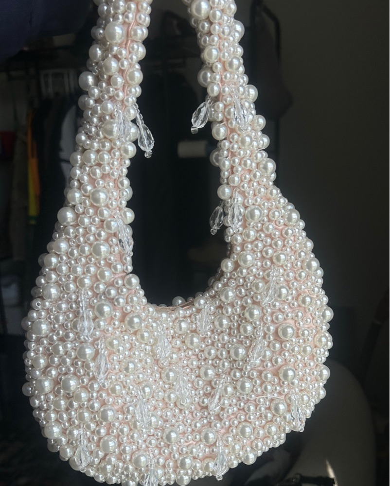 Cutest little add on! Handmade white pearl bag.
