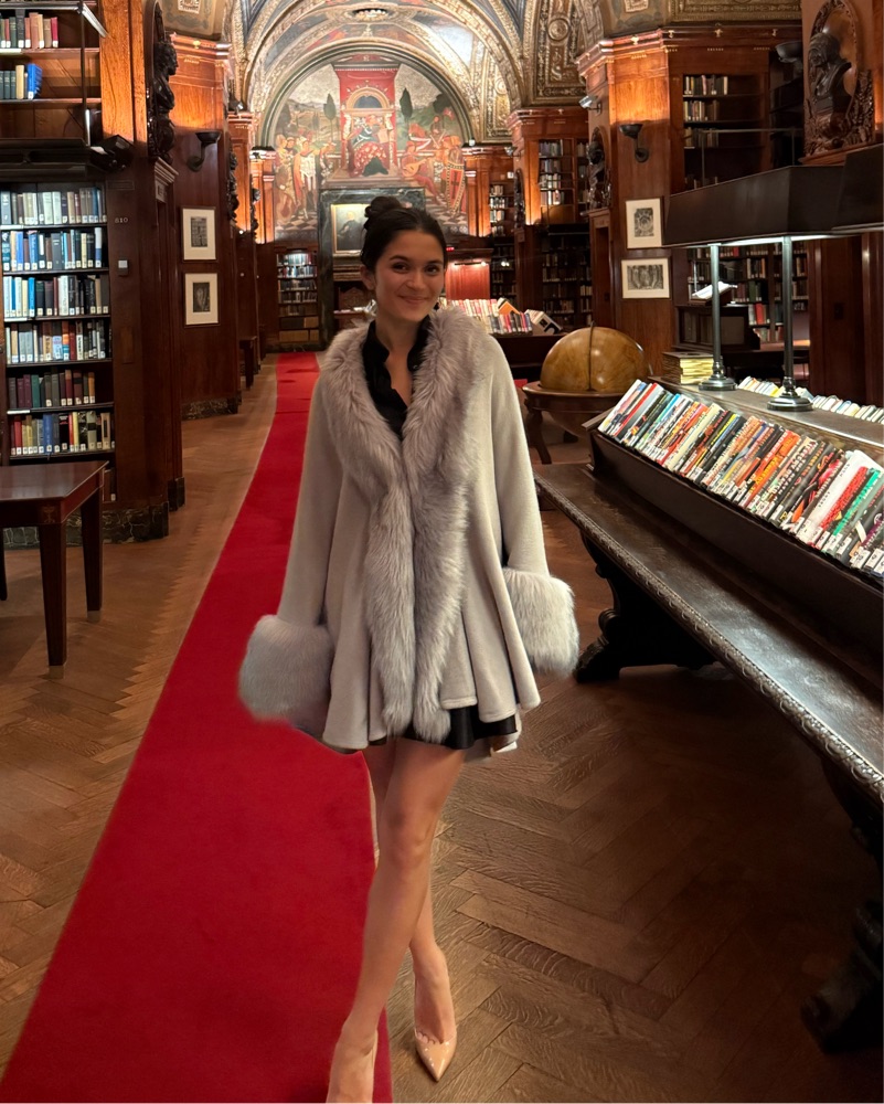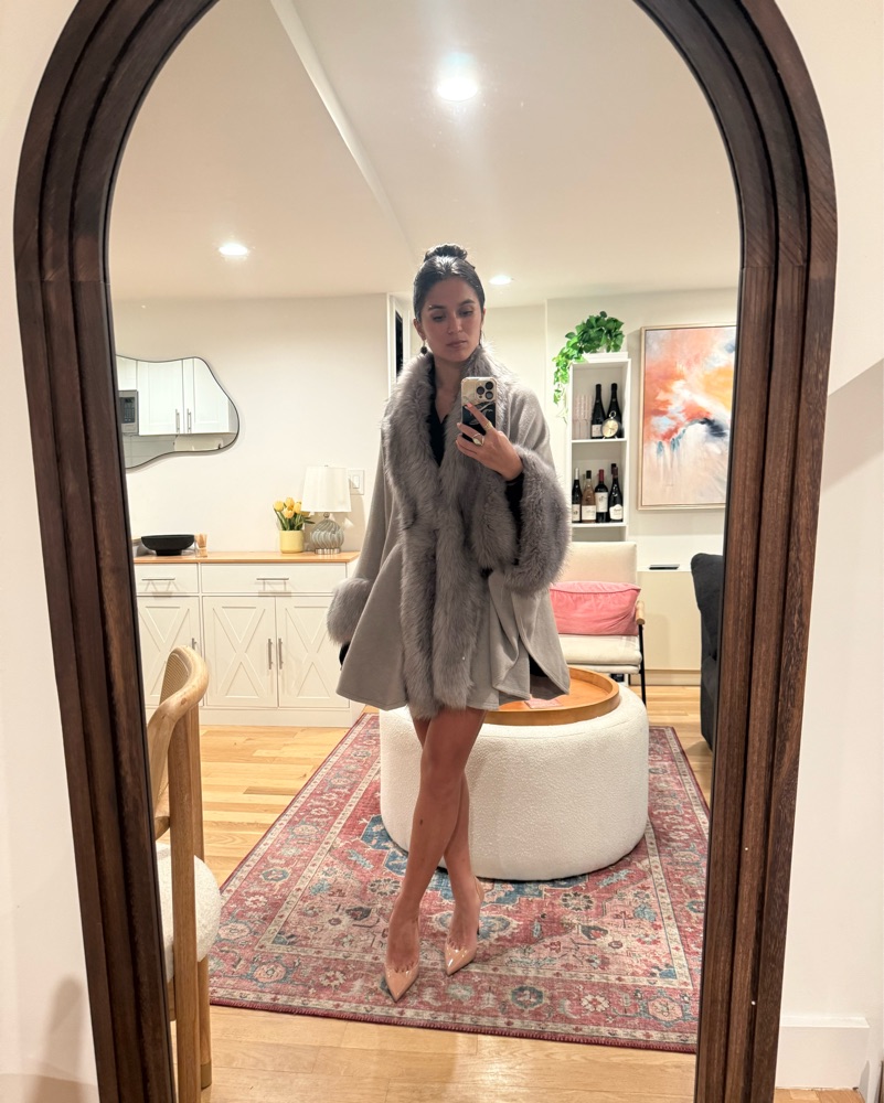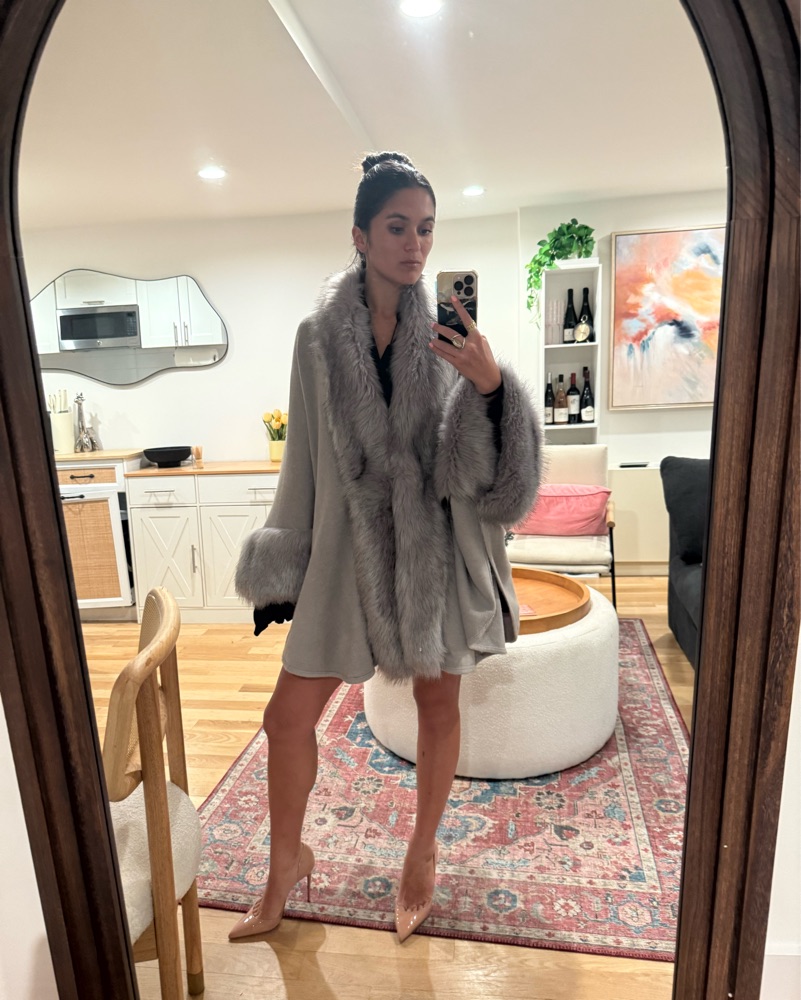 This plush faux fur hooded coat/poncho is perfect for elevating any winter outfit. Has fur. Cuffs and collar. Perfect for a ski trip. Vintage italian brand from Milano!