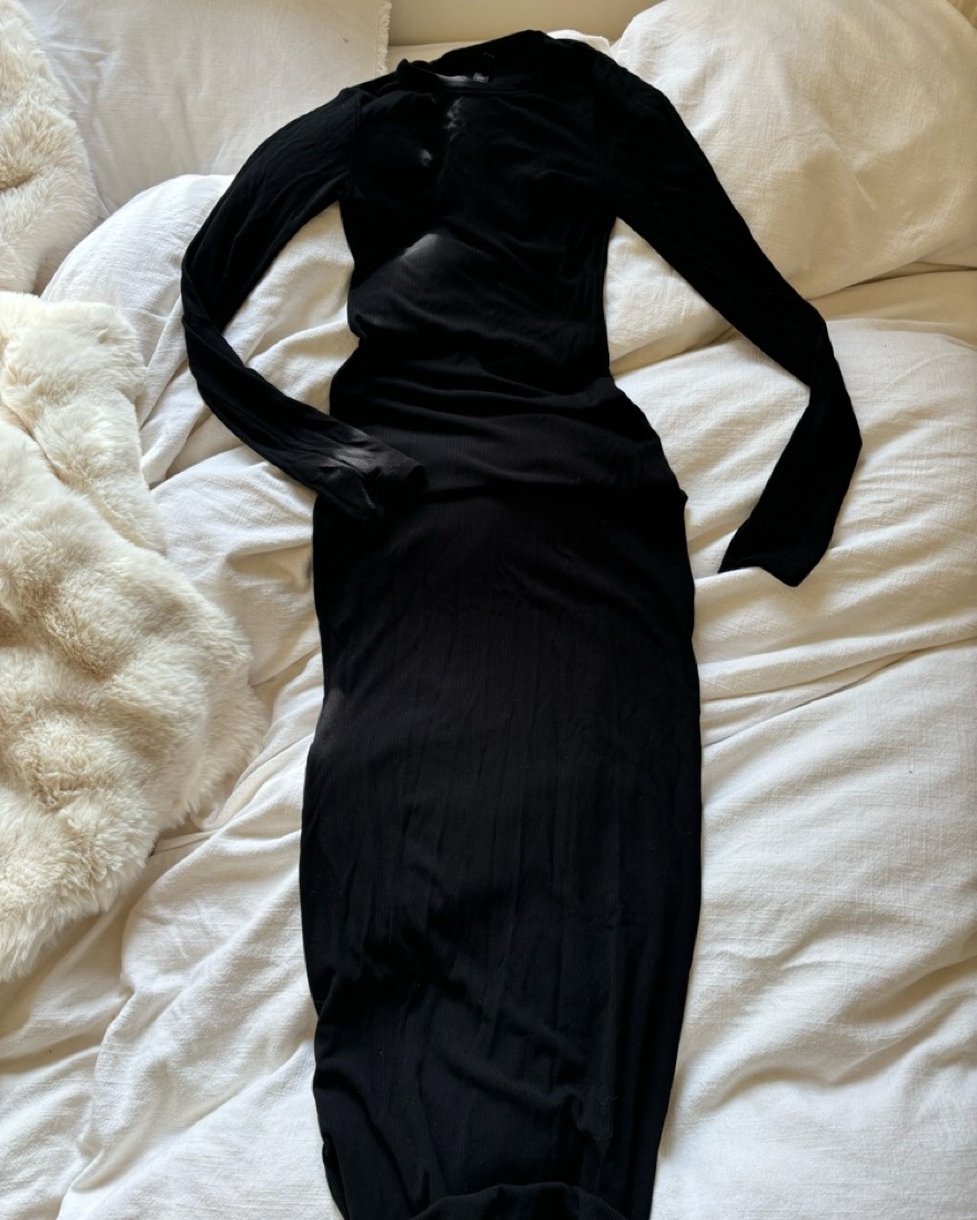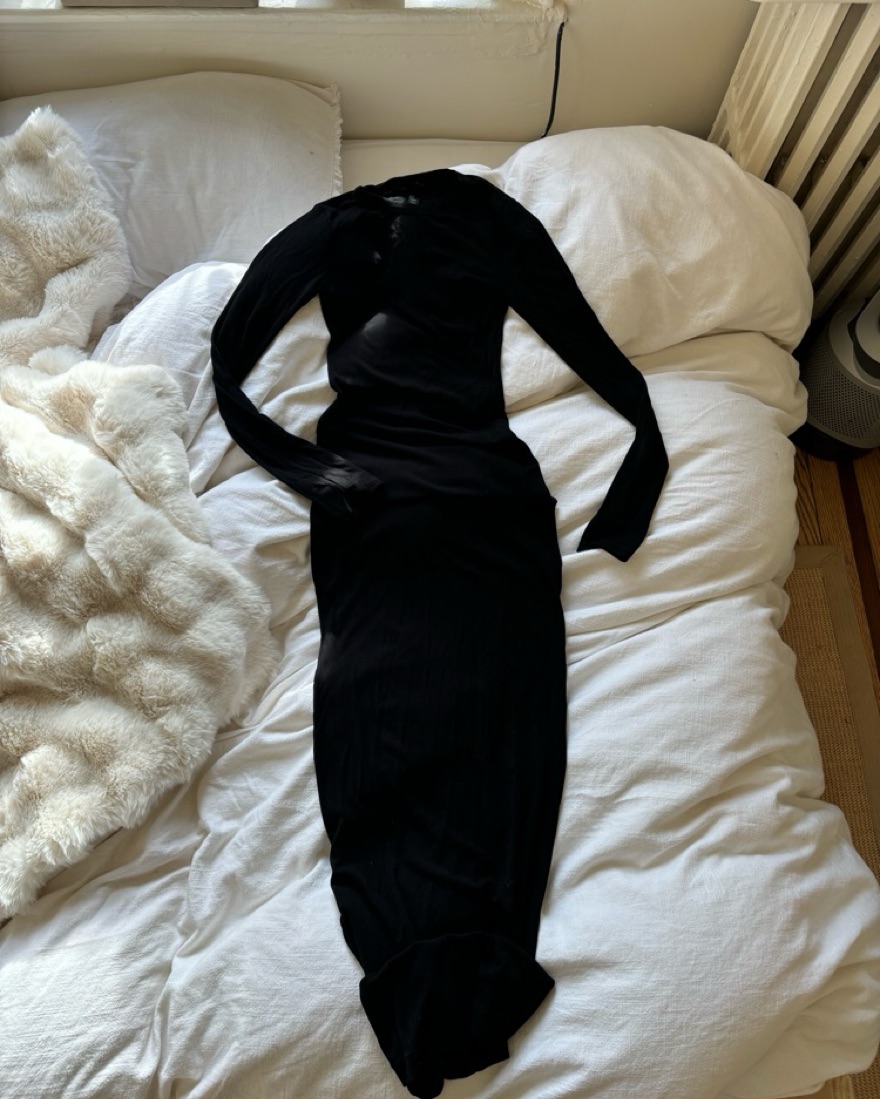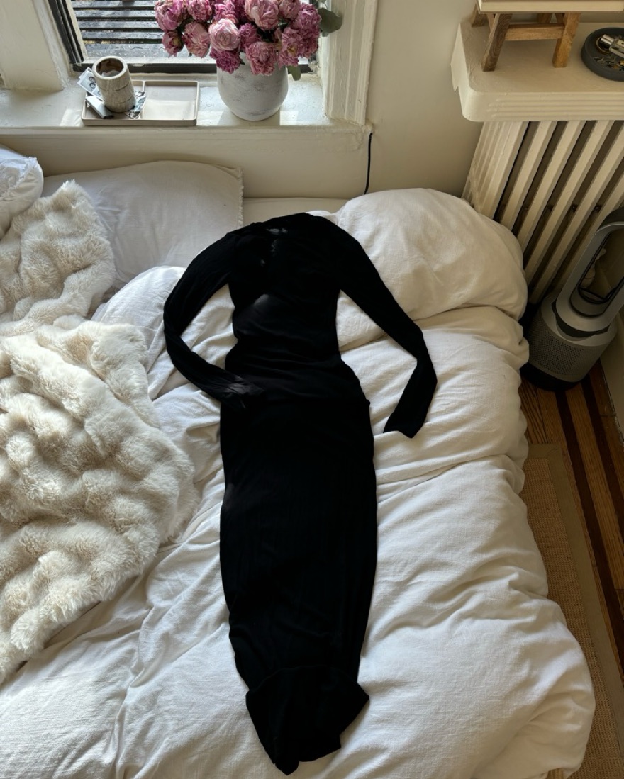 Skims long sleeve lounge dress size small onyx black stretchy material part of their soft lounge ribbed collection