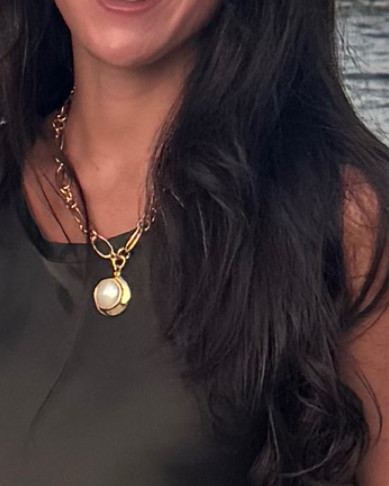This stunning gold chain necklace with a pearl pendant is the perfect accessory to elevate any outfit. It can be dressed up for a formal event or worn casually with a t-shirt and jeans.