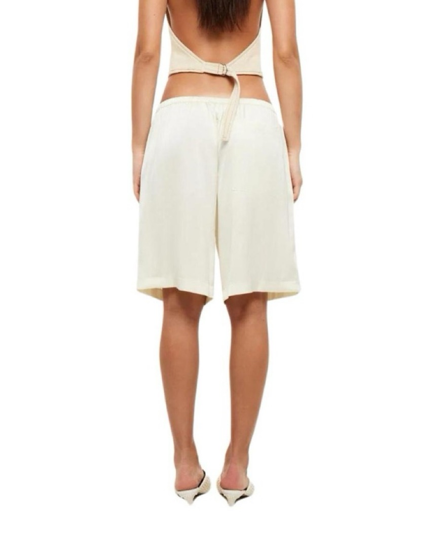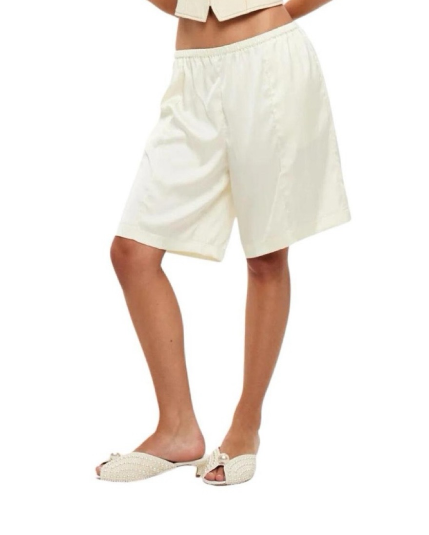 Satin ivory bermuda shorts Size Small- Runs True To Size Elasticated waistband. Wide leg. Side pockets 95% Polyester 5% Elastane