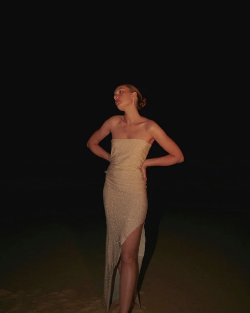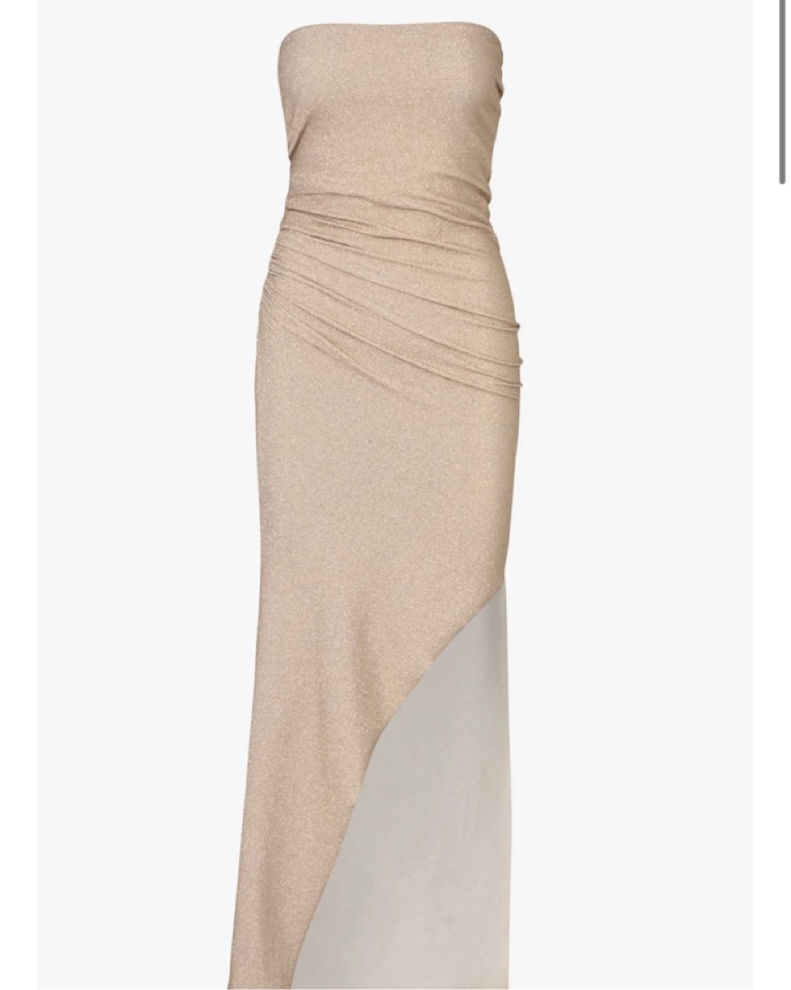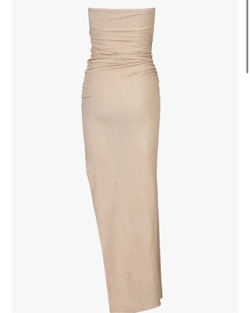gold shimmering strapless stretchy dress