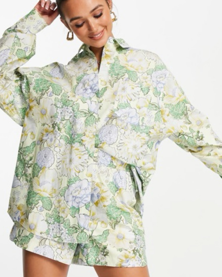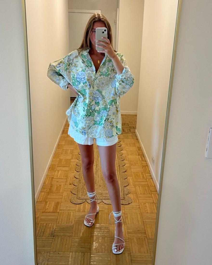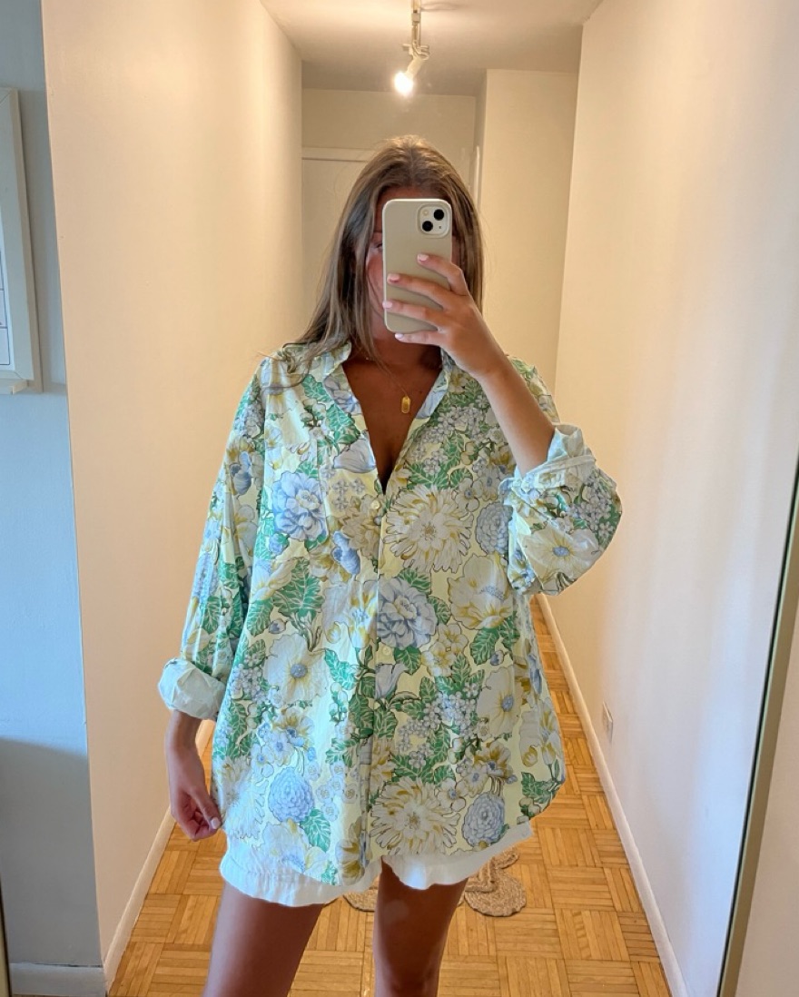 The MOST fun hydrangea print button down!!!! Amazing for summer or east coast vacation!! Was originally part of a set but I only have the top. Runs TTS, I sized up for ab oversized look - SO SO cute with shorts and heels or sandals