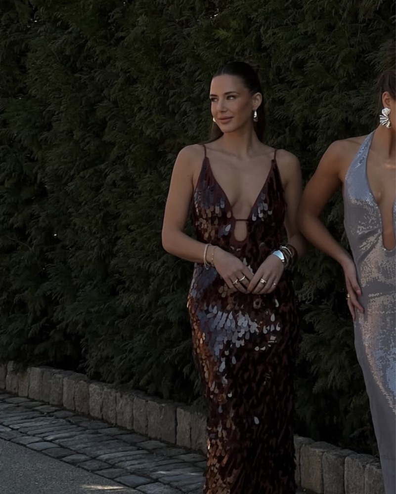 Only available for preorder - The Sapphire Sequin Maxi Dress in Fig, event-dressing redefined.
