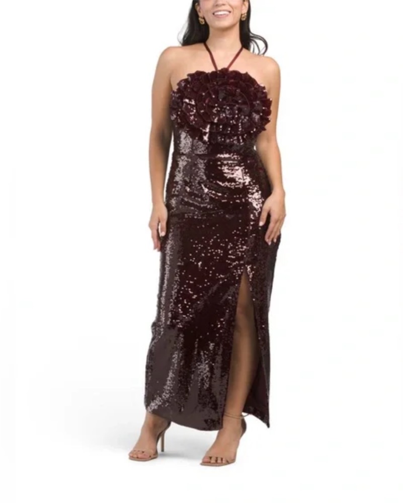 This stunning sequin halter gown is perfect for a formal event or night out. The alluring high slit and glamorous silhouette will turn heads. Has slit on side! Perfect for holiday season!!!❤️🎅🎄🎁