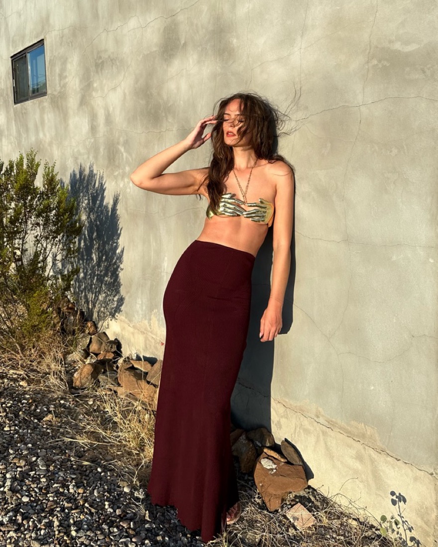 Turn heads with this eye-catching and one-of-a-kind “Manos” bralette. Made by hand in El Salvador. My bust is 30DD and I typically wear a size 0/XS. Fastens at the neck and back with a hook and eye fastening, and is adjustable.
