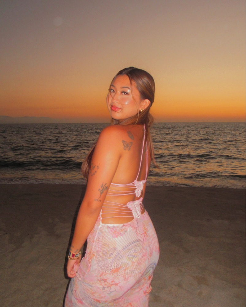Amazing condition of the most jawdropping dress ever. The back has the prettiest butterflies and it has a stretchy breathable mesh material which I believe still snatches you in well. I am about 5’3 and it’s a bit long so I scrunch it up but is perf for vacay, birthday, or going out occasion!