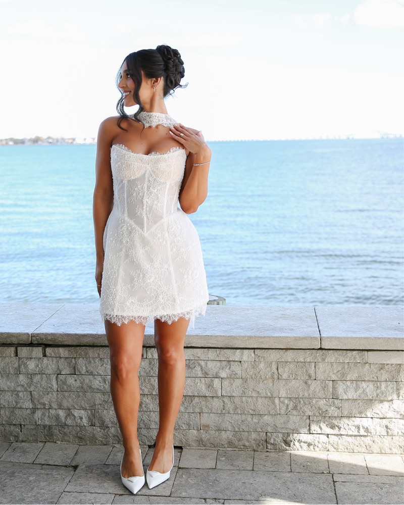 The perfect bridal mini for your civil ceremony, engagement party, shower, after party dress and more! Fits true to size and comes with a matching lace neck scarf. Elegant, yet effortless