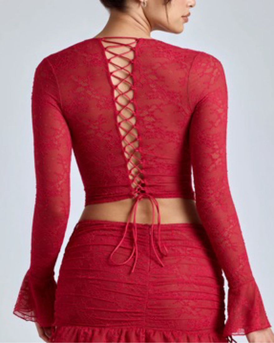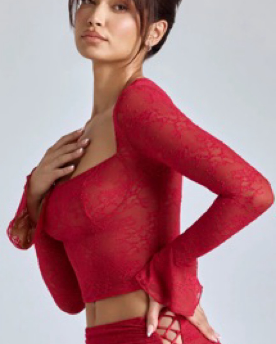 Oh Polly Red Lace Long Sleeve Lova Top by Oh Polly - Pickle