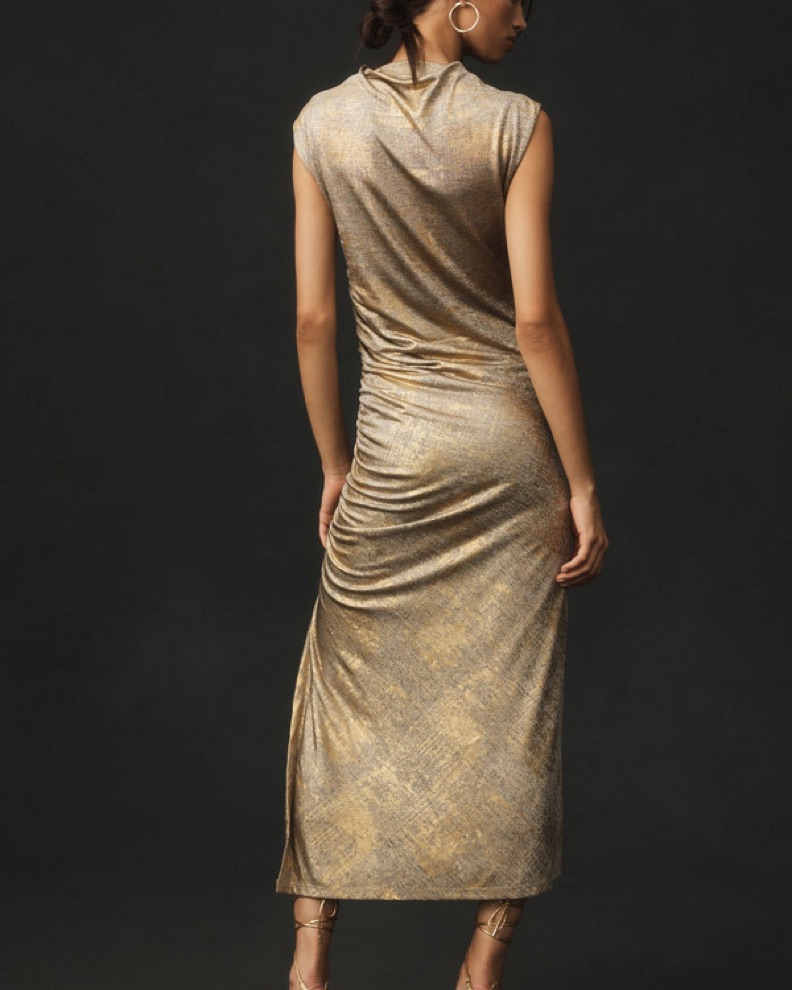The Maya Ruched Cowl-Neck Dress: Shine by Anthropologie - Pickle